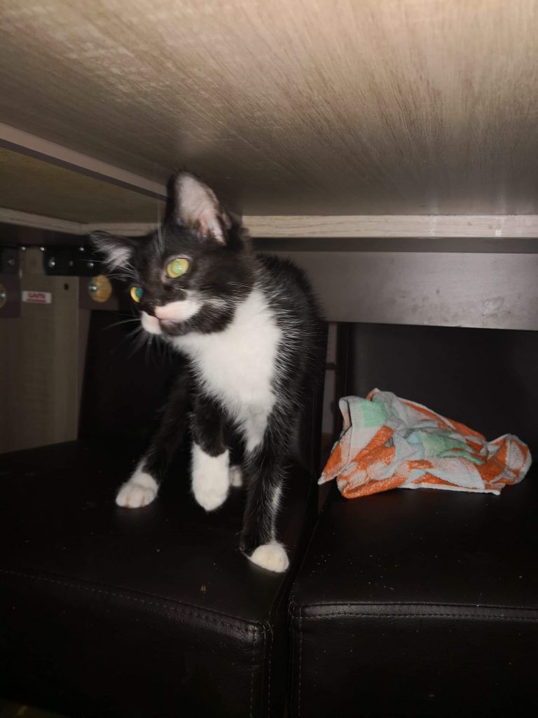 Angie est une petite puce très joueuse, un peu timide mais câline et sociable.