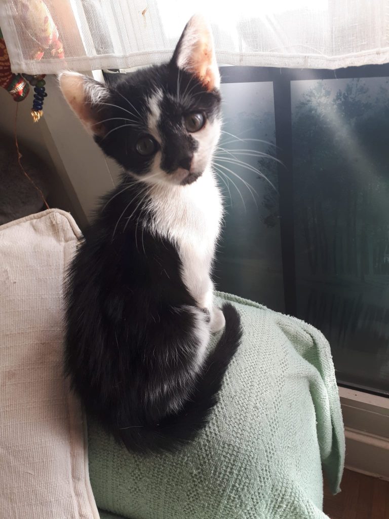 Cette adorable petite chatonne est douce et gentille . Mais c'est aussi une petite coquine , curieuse et intrépide avec ses moments de tendresse .