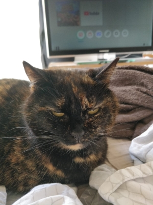 Adorable minette , indépendante et présente à la fois qui attend un panier retraite, calme et câline à sa guise, vous pouvez la rencontrer dan sa famille d'accueil qui en prend grand soin ainsi que de son copain Diégo