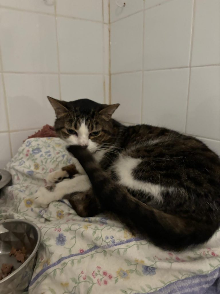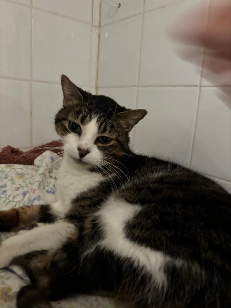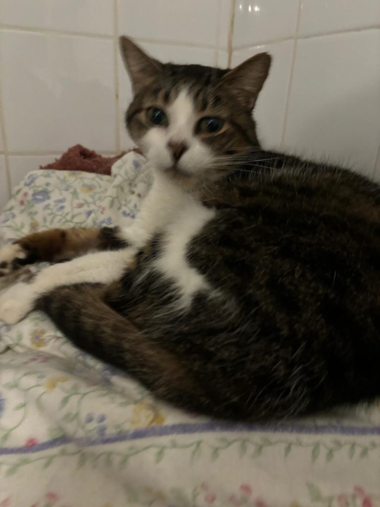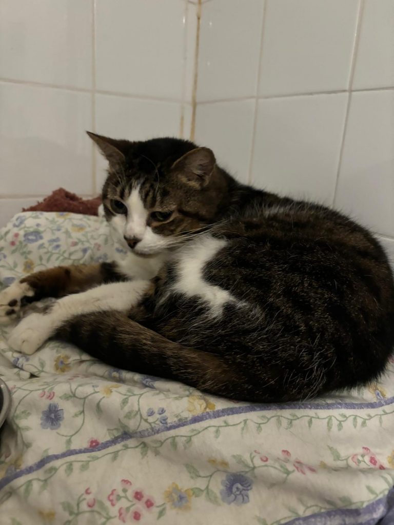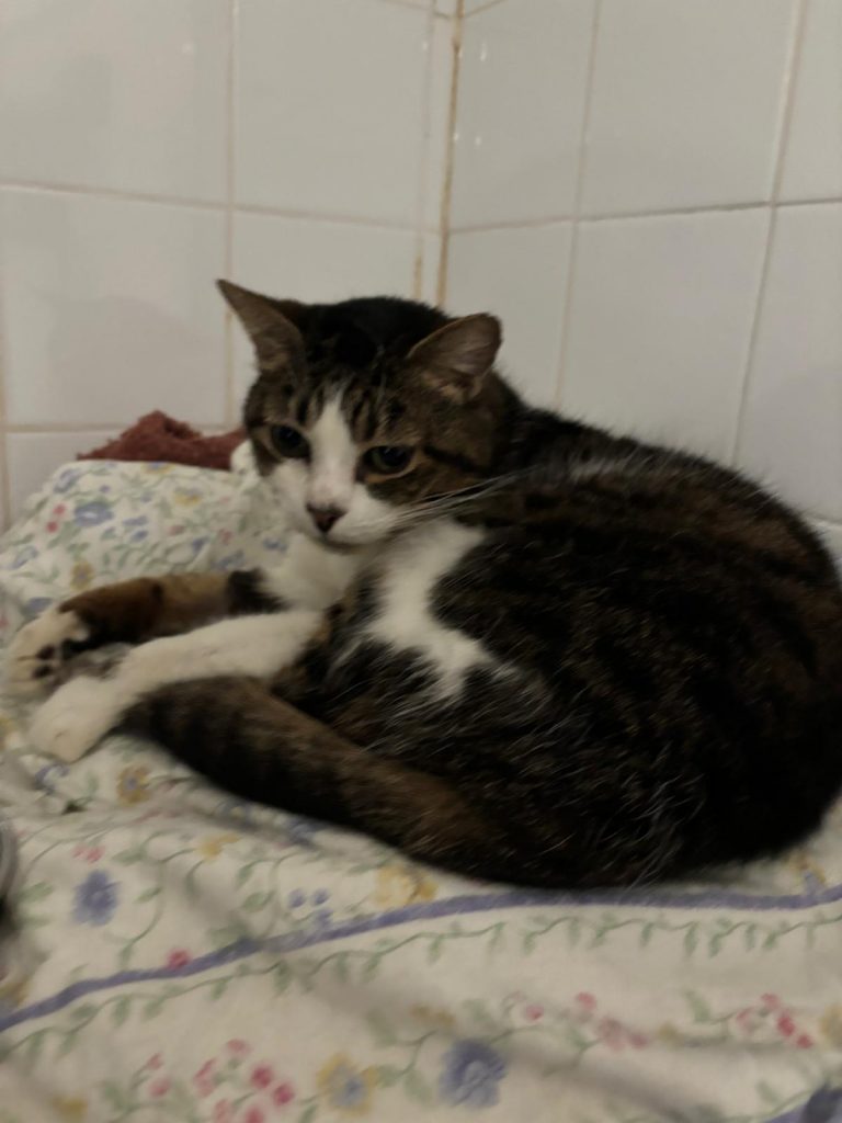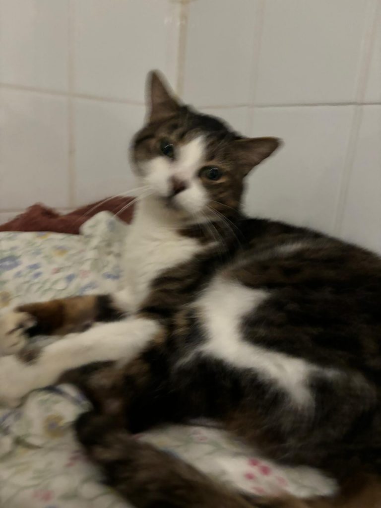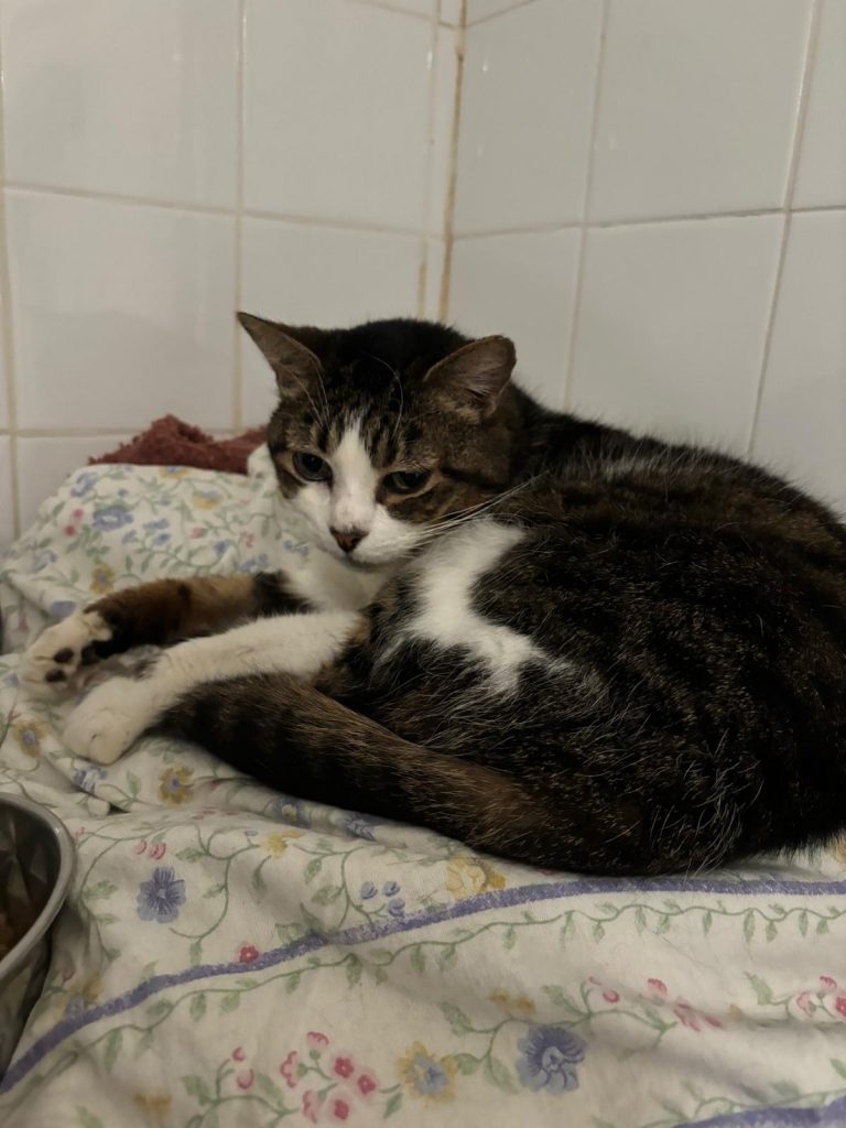 Cette gentille mamy nous est revenue après que son humaine soit décédée . Elle partageait son espace avec plusieurs chats . Elle est douce et gentille et recherche un panier retraite .
