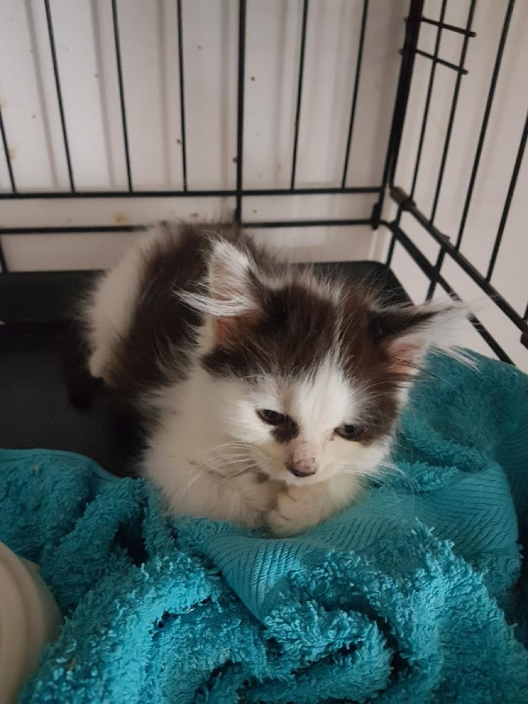Petite puce de 7 semaines pelage entre mi-long et long encore trop petite pour le determiner bientôt prête à rejoindre sa famille d'adoption