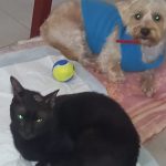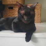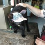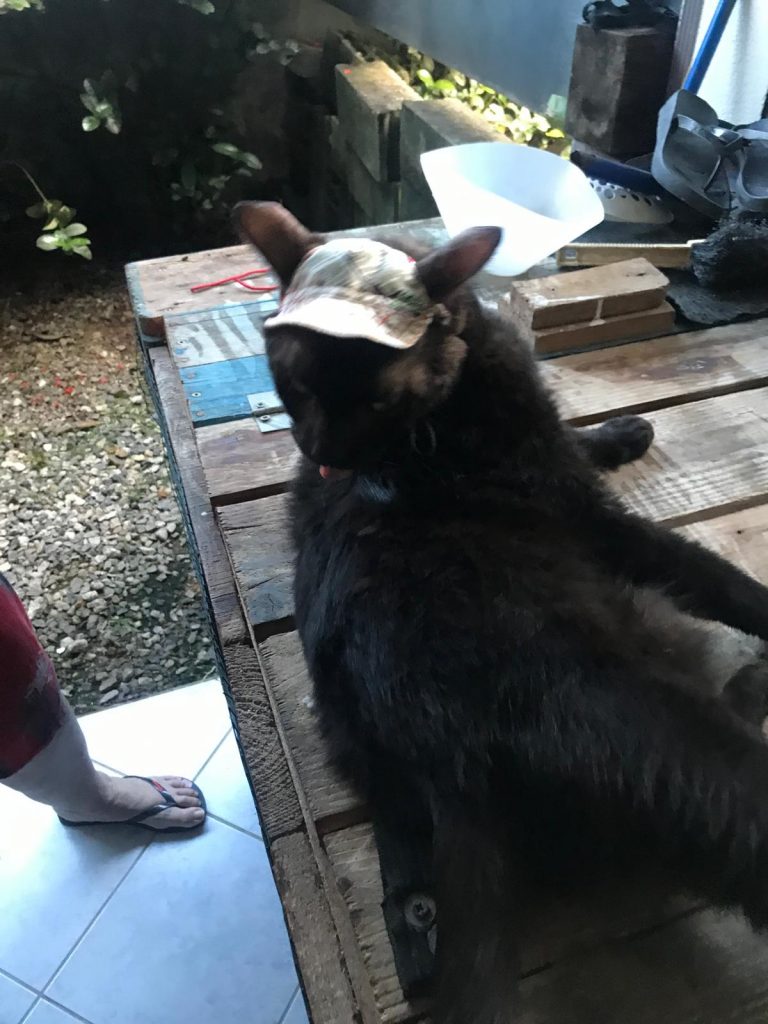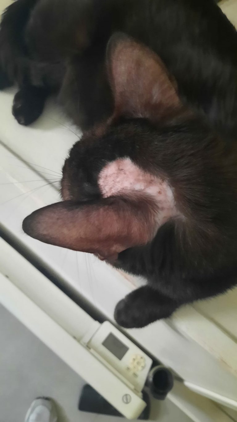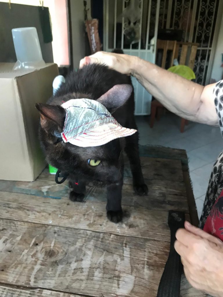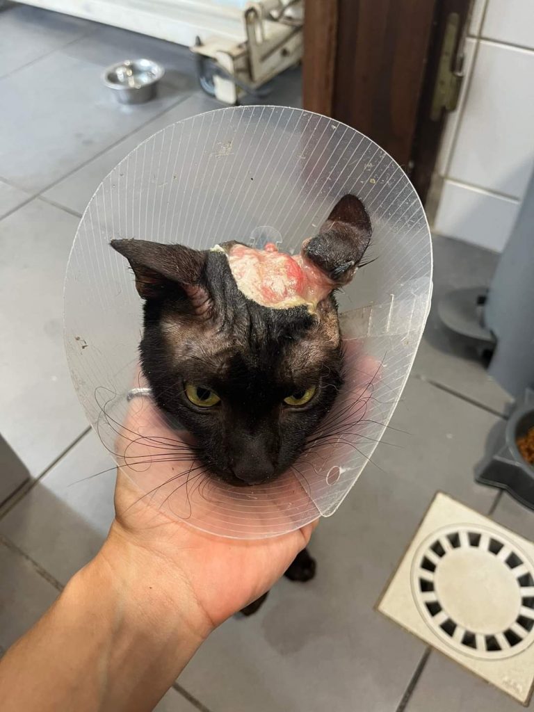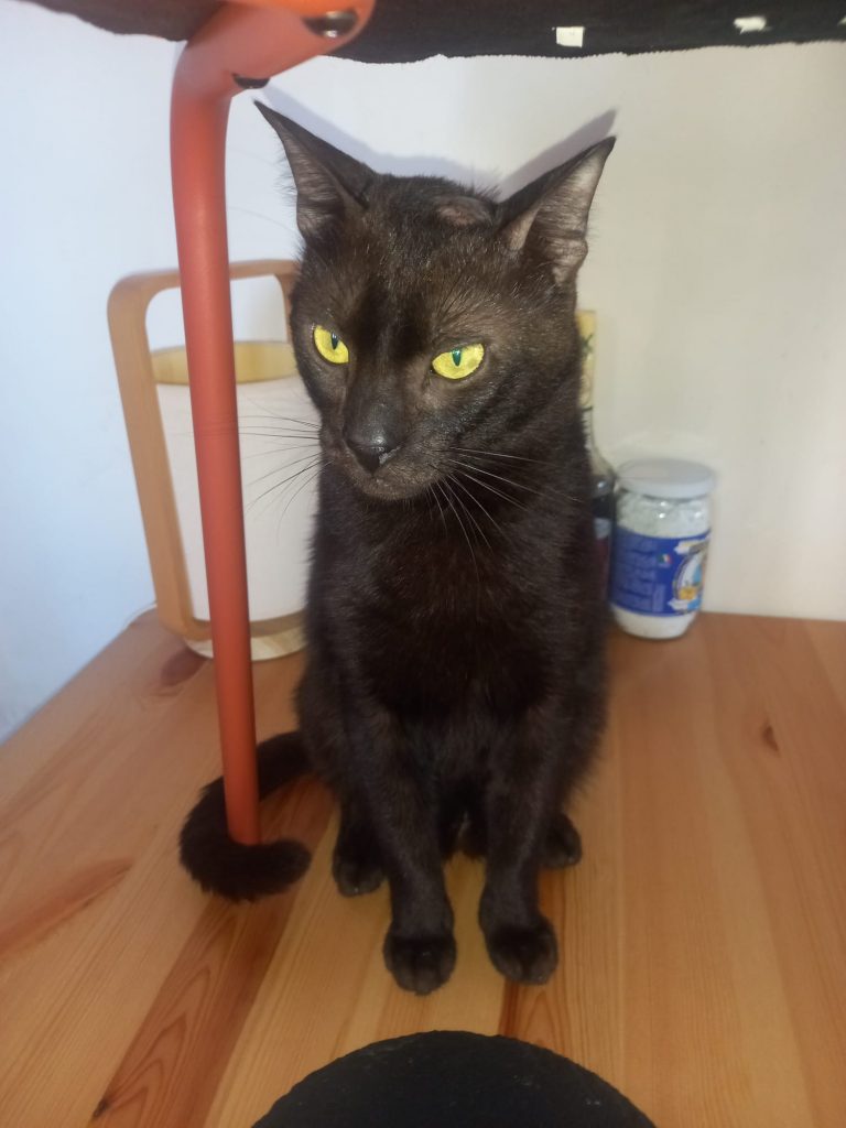 BLAKA vient de Guyane où il a fait les frais d'une coutume autochtone vaudou qui récupérè la cervelle des chats noirs . Nous pensons qu'il pu fuir le sabre qui a commencé à le décapiter et se réfugier dans le jardin d'une personne bienveillante pour chercher de l'aide .