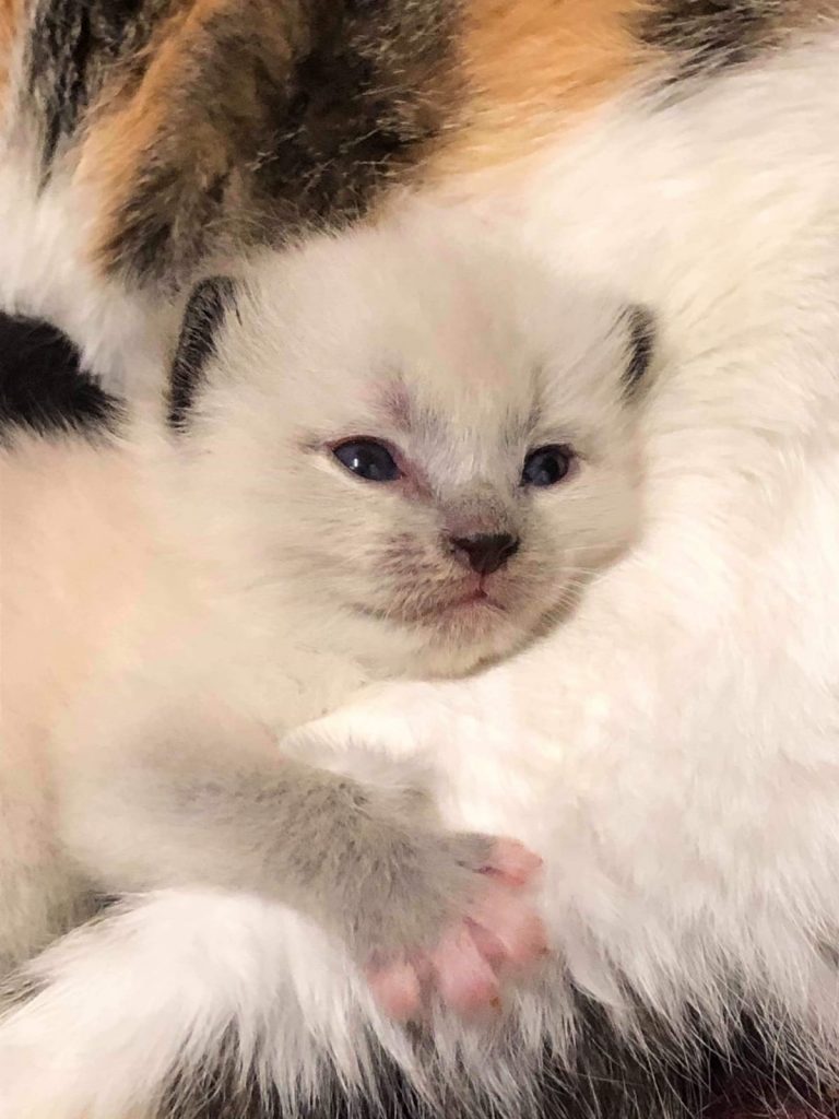 Bleuet est un chaton trouvé sans maman notre douce camomille l'élève comme son propre fils il évolue magnifiquement bien a ses côtés ainsi qu'avec le reste de sa fratrie de coeur (a réserver des maintenant) il pourra rejoindre sa famille d'adoption environ mi-juin