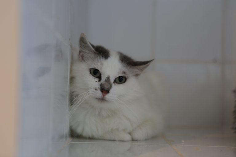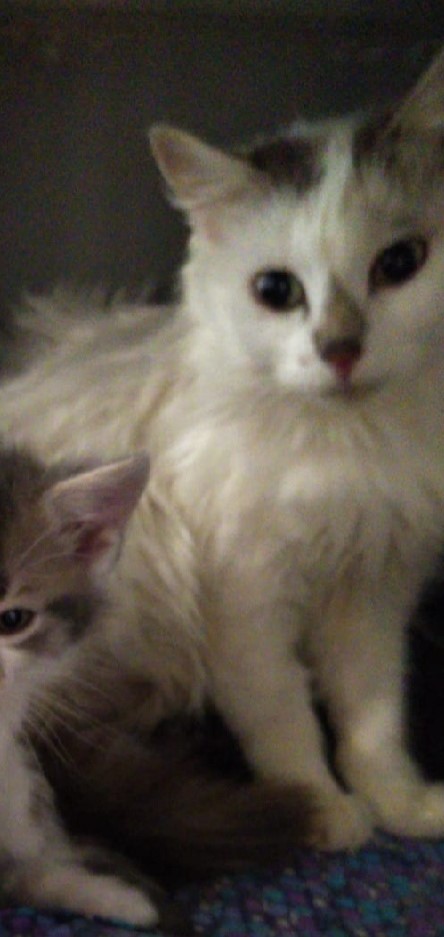 Cette jolie minette a été abandonnée dans les espaces verts d'une résidence où on ne lui voulait pas que du bien. Elle y a accouchée de 3 petits qu'elle finit d'élever et sera prête à une famille d'accueil dans quelques jours. Elle a besoin de prendre confiance en l'humain.