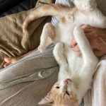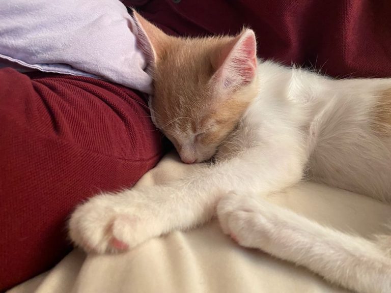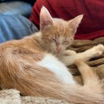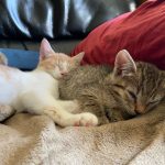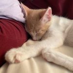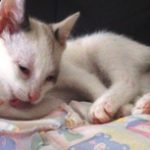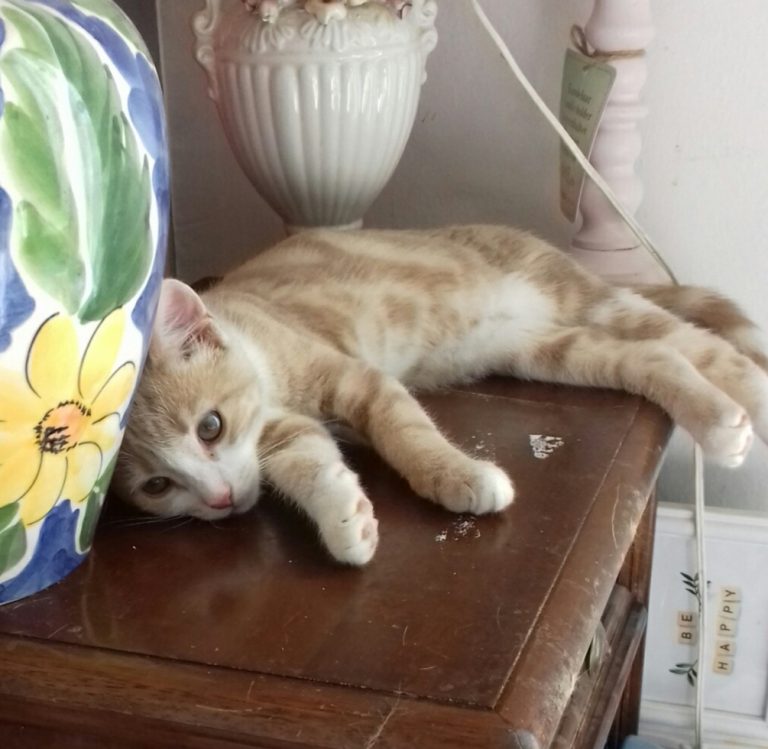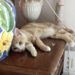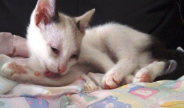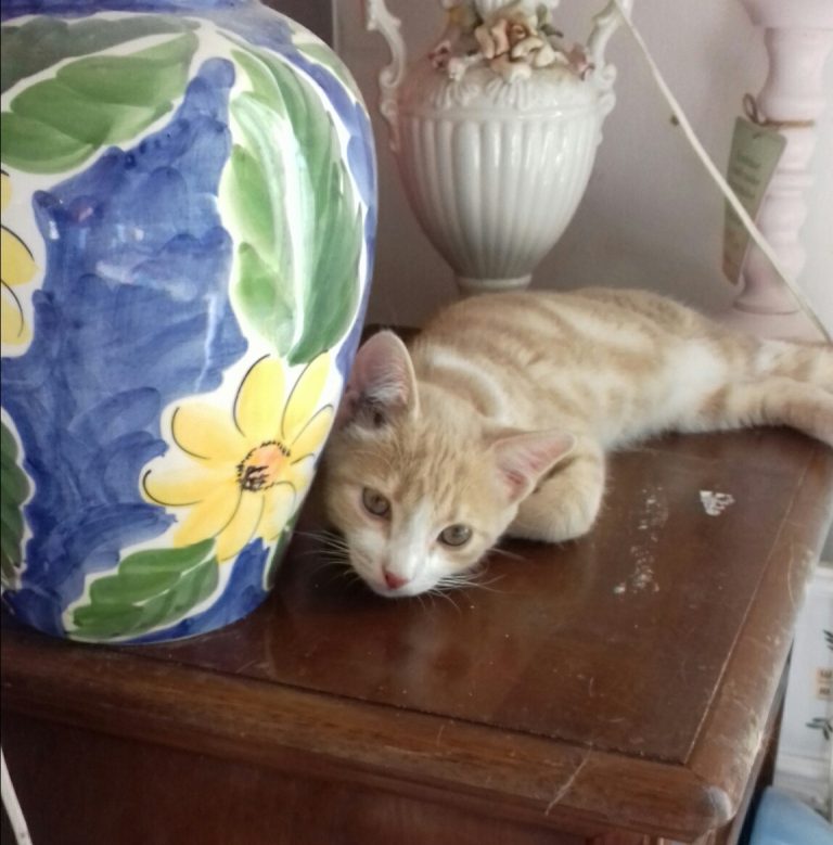 Hélas un méchant virus les a atteint et il a fallu les soigner pendant plusieurs semaines Tout ce petit monde a guérit mais malheureusement Capuccino en a garder des séquelles neurologiques . Concrètement il est ataxique , c'est à dire qu'il tombe en marchant . Il vit normalement et joue avec ses congénères avec entrain . C'est un petit bonhomme très attachant et dynamique.