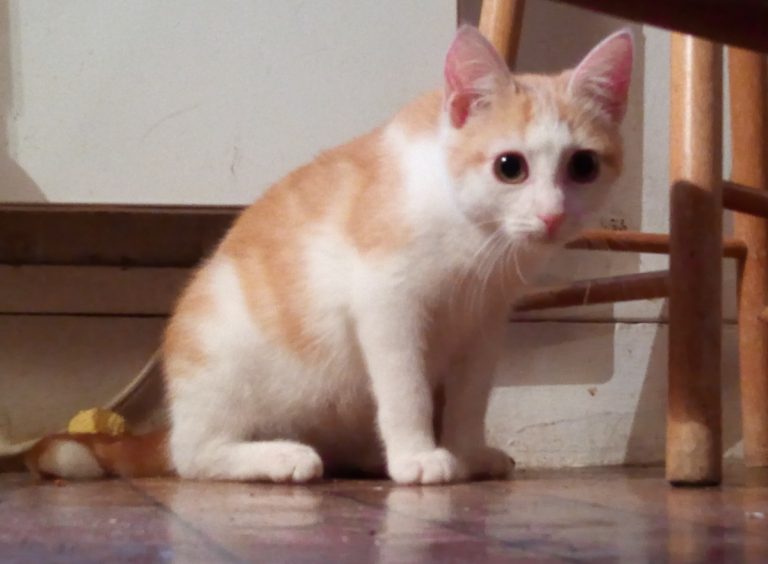 Petit chat qui ronronne et qui vient chercher les câlins