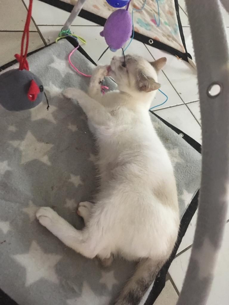 De timide, Cléopatre est devenue très sociable et pot de colle. Elle est très bavarde et réclame des câlins et qu'on remplisse sa gamelle ;)