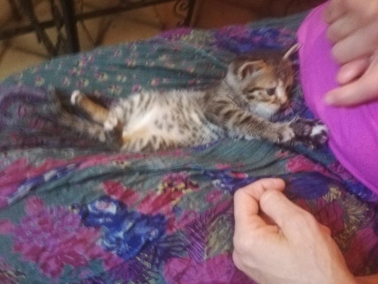Adorable petit bout de chat bien dans ses patte; tout mimi tout câlin , Il est issu d'une fratrie de 5 petits élevés par une maman attentive mais fatiguée de faire portée sur portée. Nous l'avons sortie de ce cycle infernal et nous lui chercherons une famille dès que ses bébés seront partis vers leur avenir