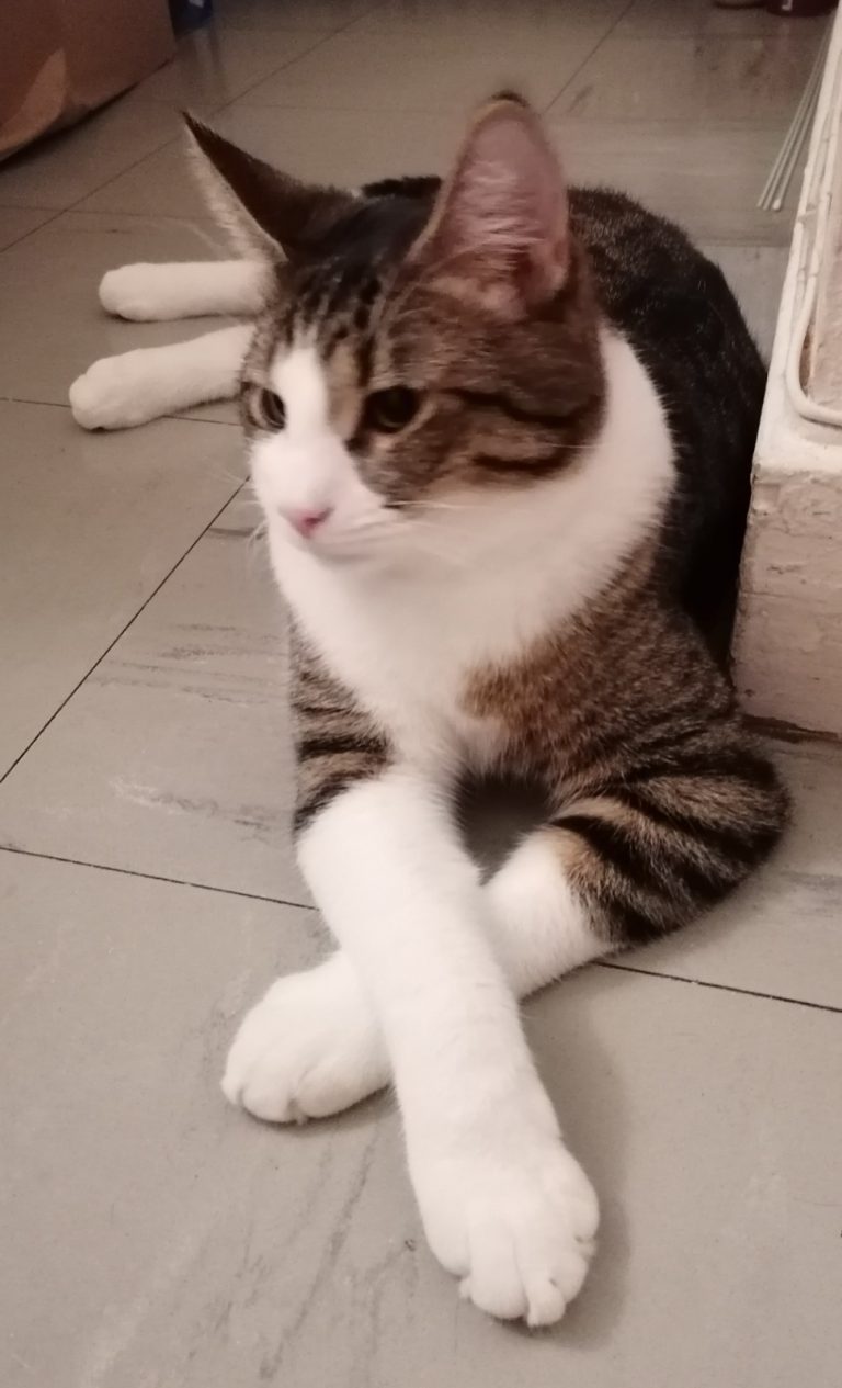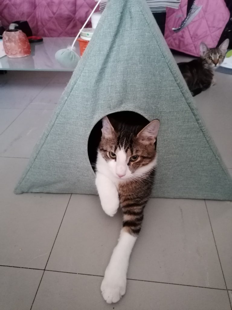 Comme ses frères et sœurs, il se planque quand des personnes inconnues pour lui viennent chez moi, mais avec un peu de patience on peut l'amadouer.