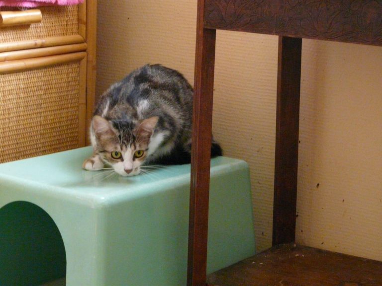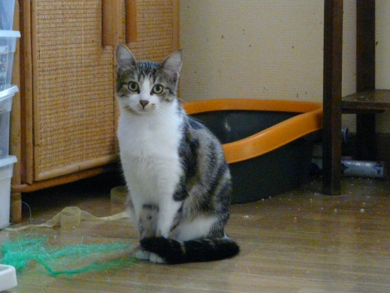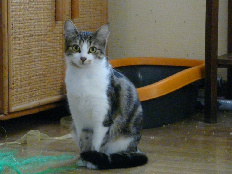 Elle est d'une grande douceur et joue avec une autre petite chatte également en cours de sociabilisation, mais en dehors de toute présence humaine.