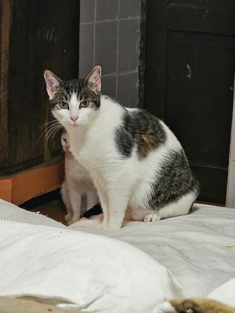 DINGO est un mâle de 6 ans. C’est le tigré blanc à droite sur la première photo. Il est très craintif et aime bien feuler sur les humains pour leur dire qu'il ne les aime pas ! En réalité il n’est pas du tout agressif, calme et très gourmand. Il est très souvent en train de dormir avec Picsou et Dingo, qui sont ses 2 meilleurs copains depuis plusieurs années.