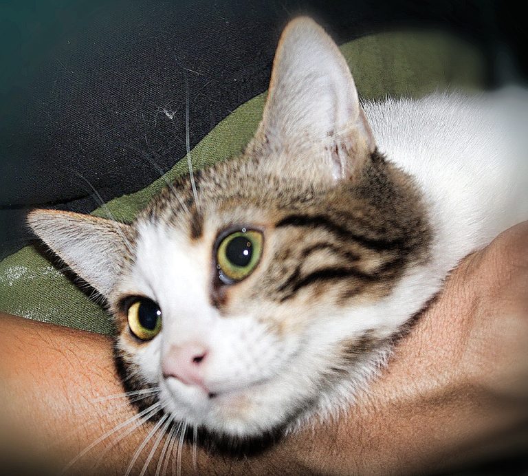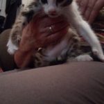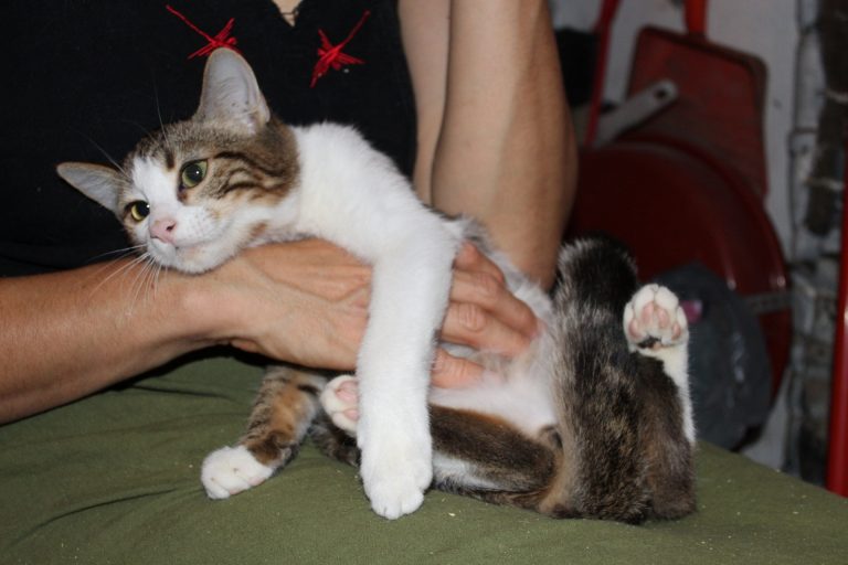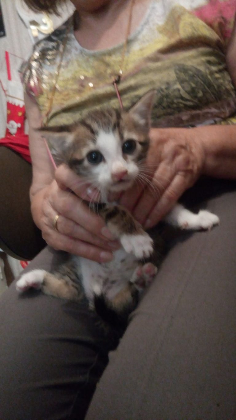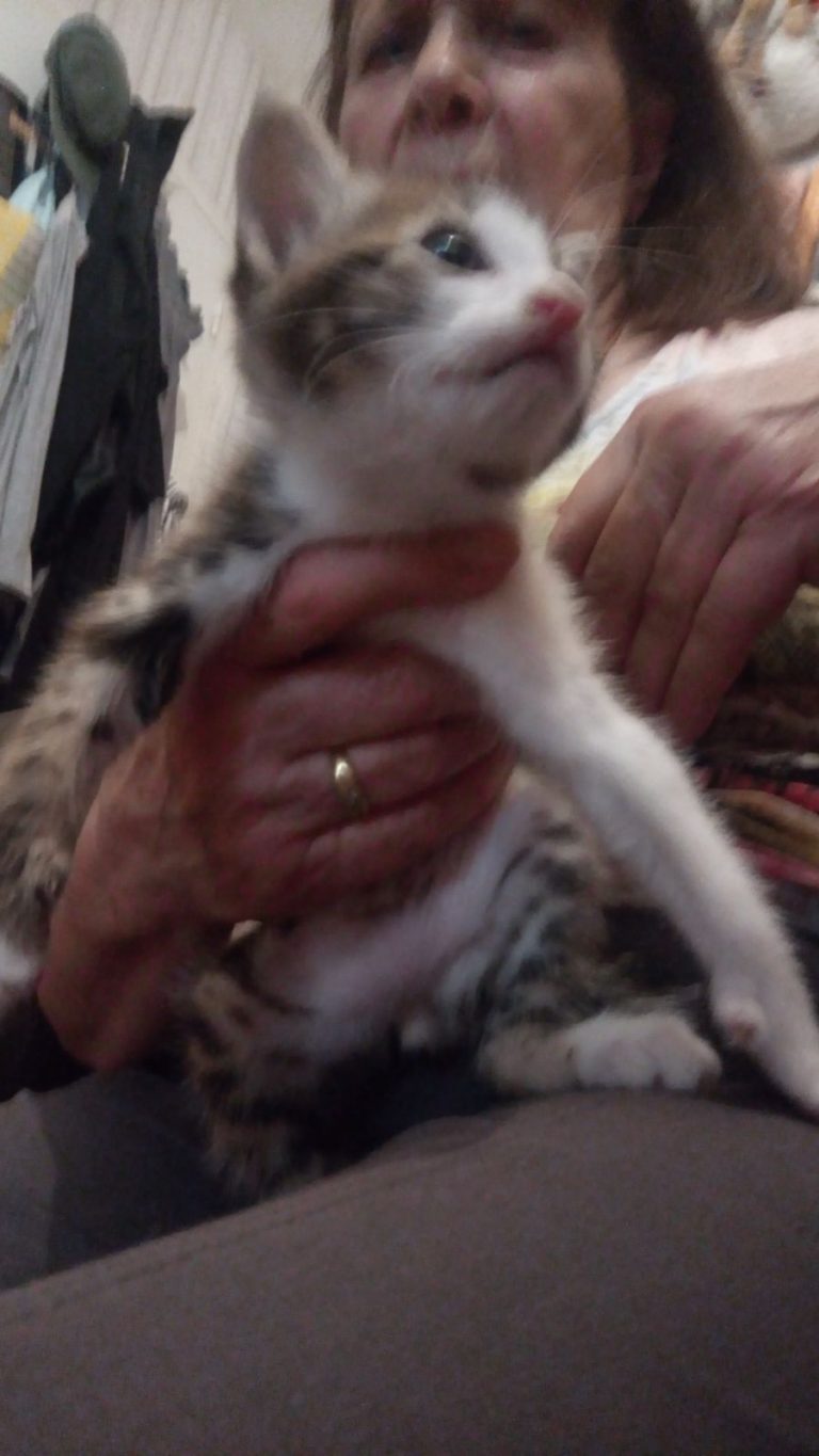 Il se laisse porter dans les bras et est toujours en cours de sociabilisation. Il est encore tout bébé donc sa sociabilisation ira relativement rapidement.