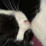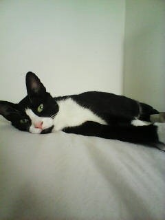 C'est un chat sympathique qui commence doucement à se lâcher et à se laisser aller à des séances de câlins, mais il reste encore un peu craintif.