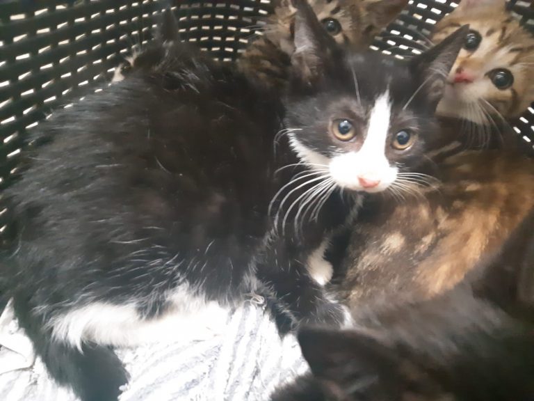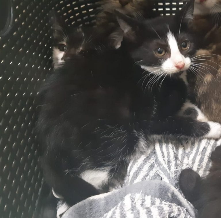 Cette adorable petite chatonne l'a échappé belle , elle est née dans une usine de recyclage de déchets et aurait pu finir au fond d du cuve si un employé lanceur d'alerte ne l'avait pas repérée ainsi que sa maman et sa fratrie.