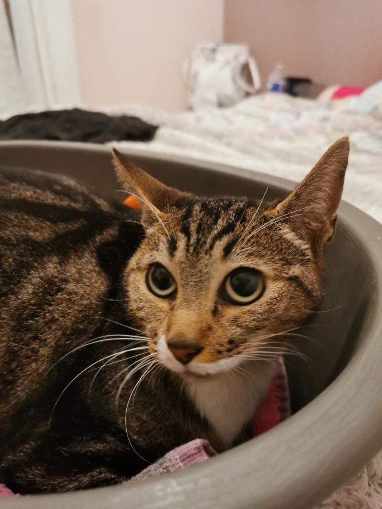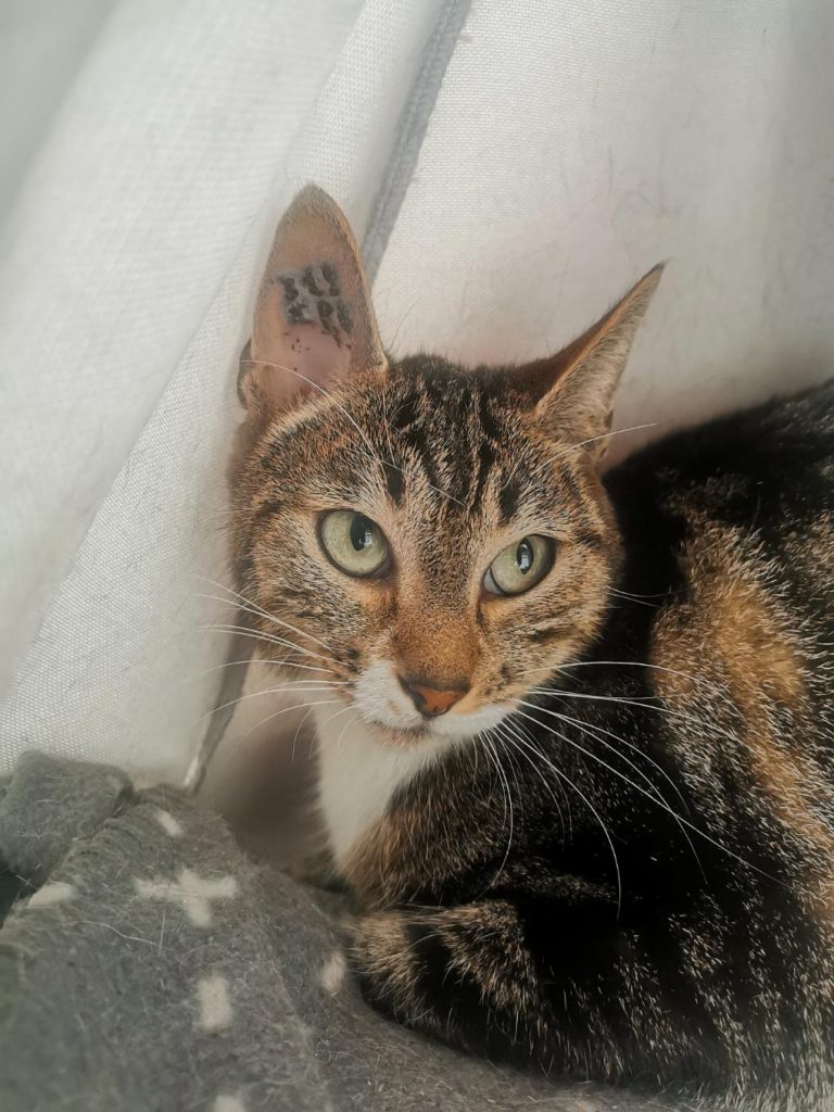 FIDJI est une petite minette trouvée dans un jardin avec son chaton qui depuis a été adopté . Elle est restée timide mais a fait beaucoup de progrès dans sa famille d'accueil . Elle est douce et calme et apprécie les caresses mais ne vient pas les chercher . Nous attendons pour FIDJI une famille patiente et attentive qui ne cherche pas une chatte pot de colle mais mais souhaite donner sa chance et un foyer une gentille minette qui le mérite .