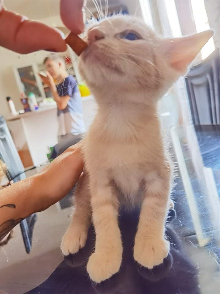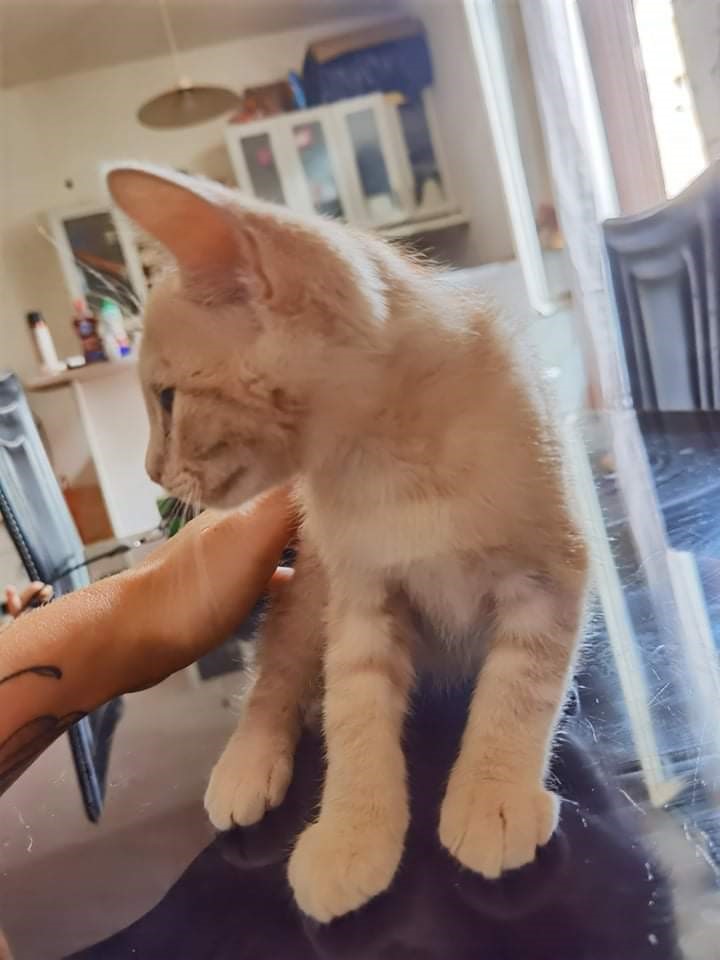 Ce beau gosse issu d'une petite fratrie de 4 bébés est très doux et gentil quoique encore un peu timide , il lui faudra une famille très présente et attentive qui saura le câliner car il aime beaucoup ça. Joueur et gourmand il pourra rejoindre sa famille humaine courant août.