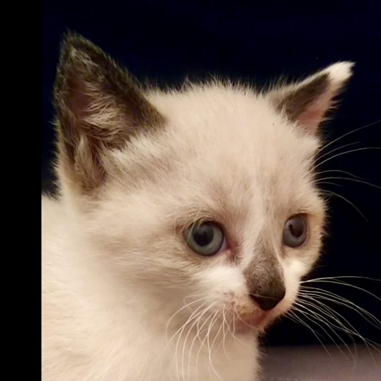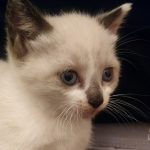 Petite puce un peu craintive qui se met à ronronner une fois dans les bras