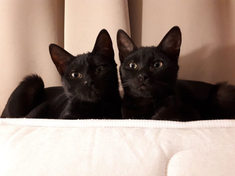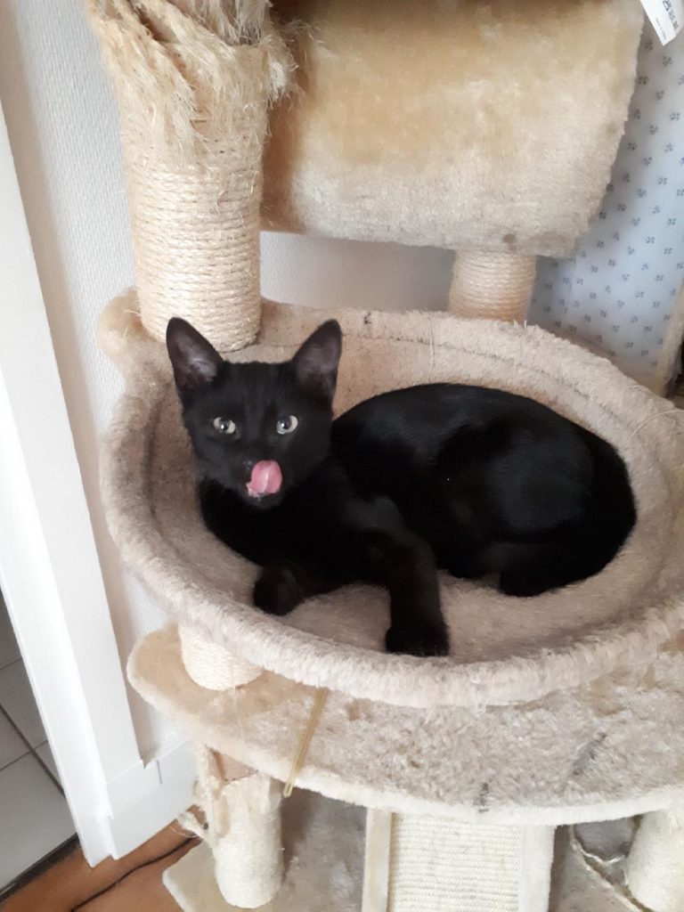 Petit minou noir en famille d'accueil avec sa soeur sur Paris visible sur rdv