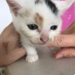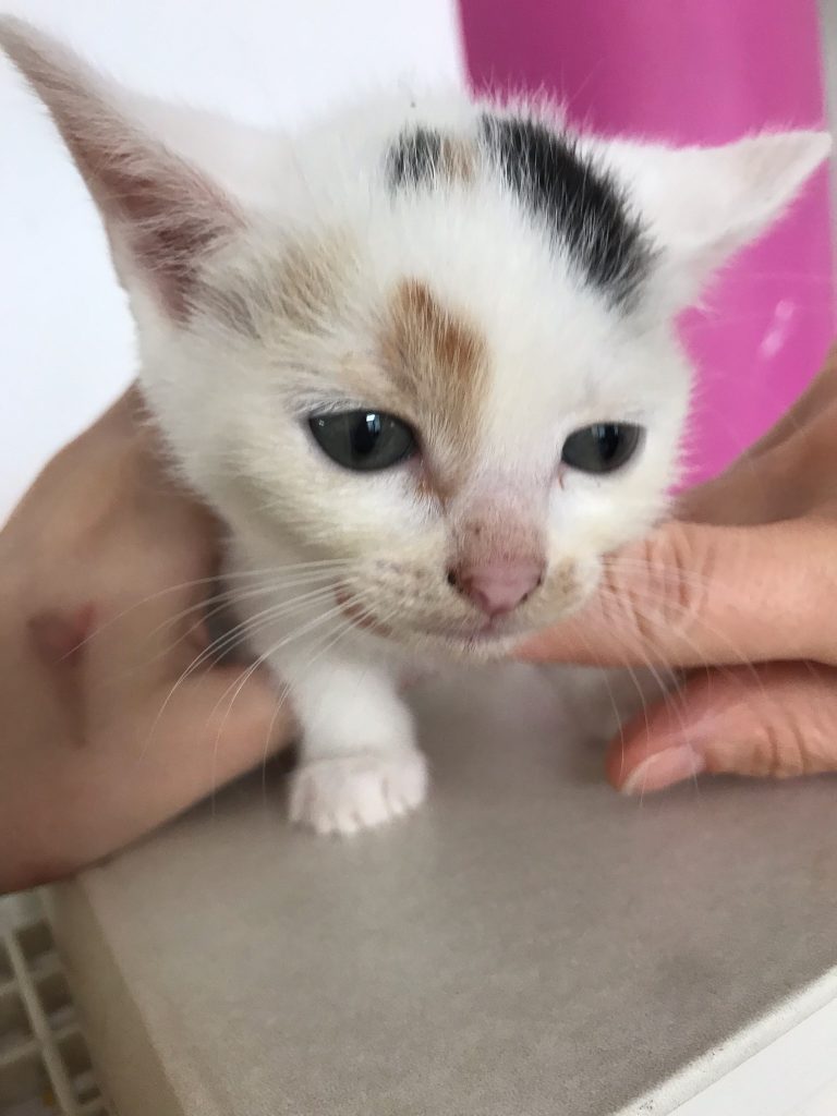 Issue d'une fratrie de 5 petits, récupérée avec sa maman dans un endroit hostile. Toute douce et touet gentllle, bientôt prête à quitter sa famille pour de nouvelles aventures