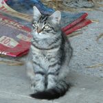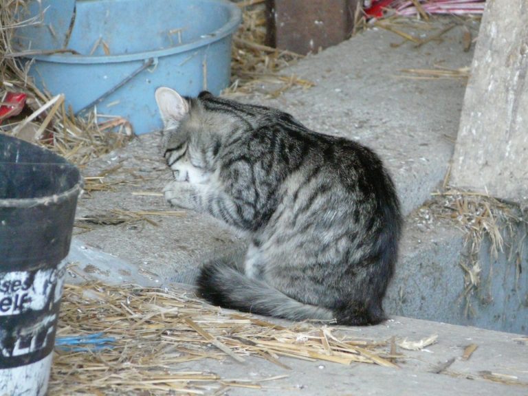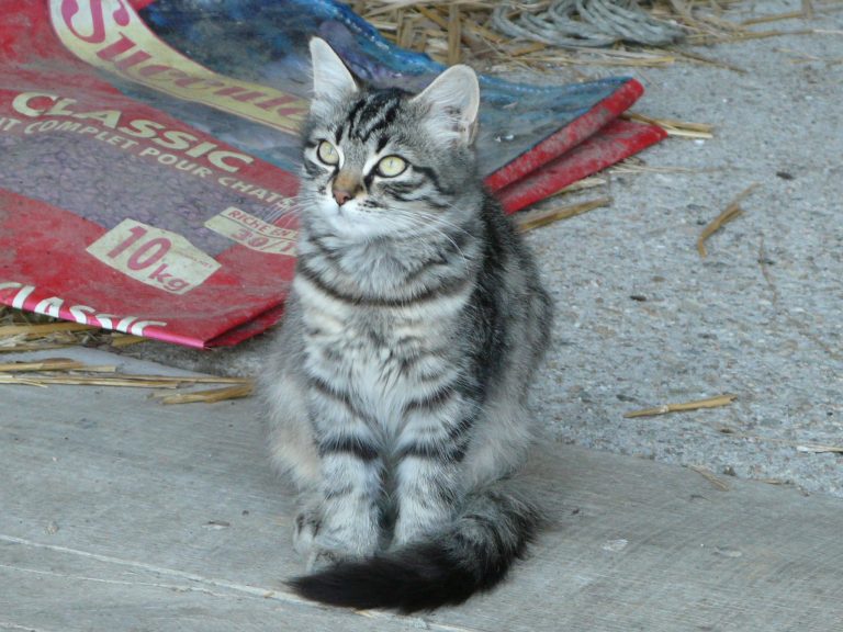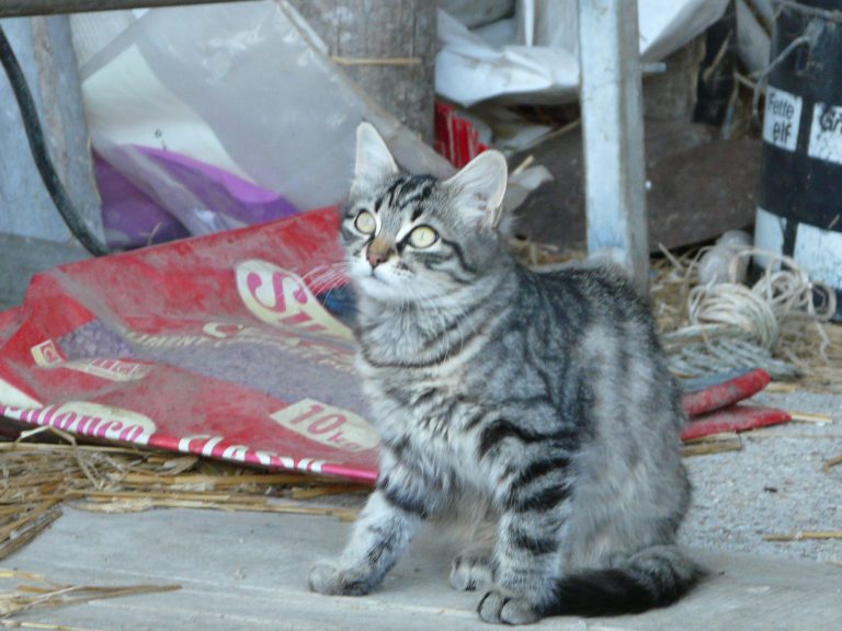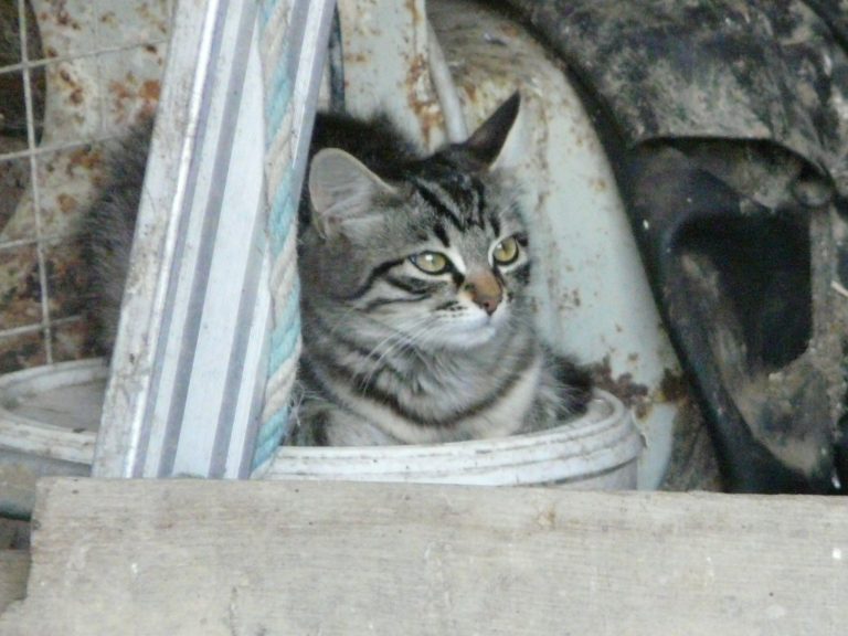 Petite chatte née dans une ferme où les chats sont utilisés pour chasser les rongeurs. L'agriculteur leur donne un kilo de croquettes (de bonne qualité) par jour. Les chats vivent en toute liberté à proximité des vaches de la ferme. Les locataires des bâtiments d'habitation, des citadins, nourrissent également les félins et leur donnent l'affection dont ils ont besoin.