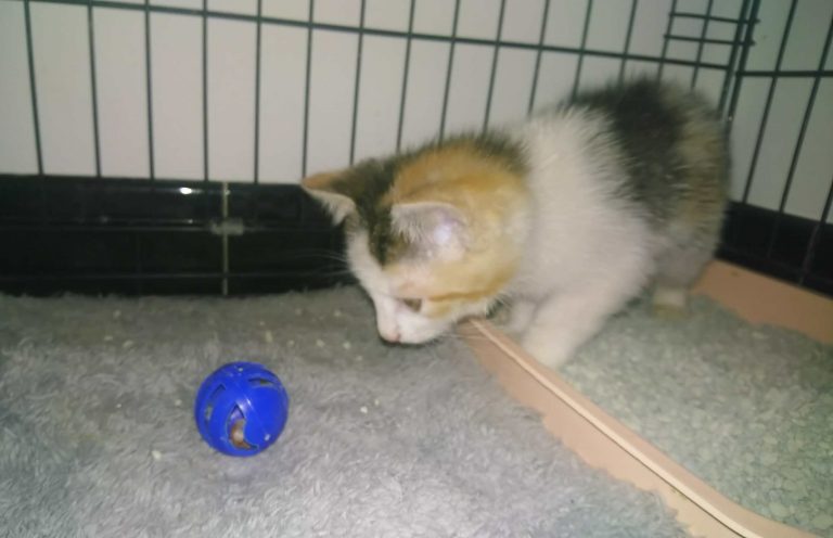 Petite puce de 2 mois bavarde c'est également une grosse miss câlin qui ronrone des qu'elle voit la personne qui s'en occupe actuellement elle aime aussi jouer.En famille d'accueil jusqu'à son adoption