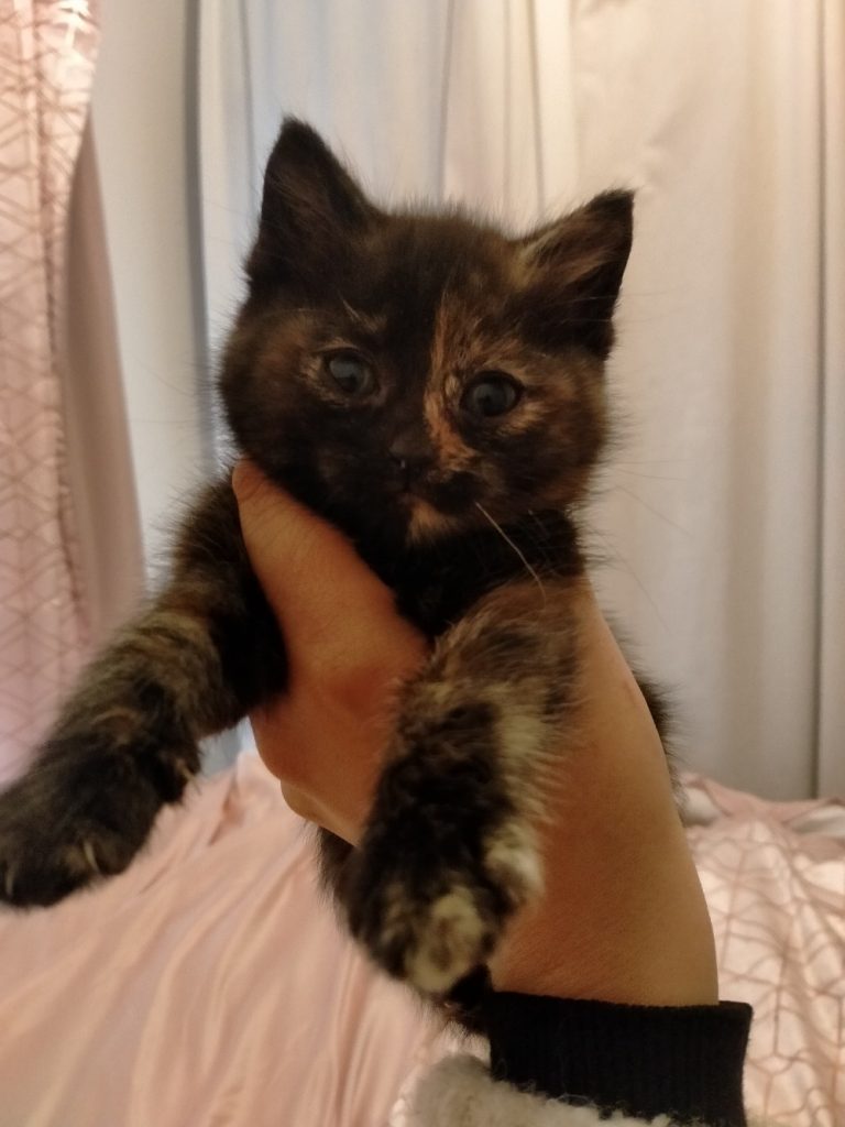 HORTENSE est issue d'une fratrie de 5 bébés récupérée dans la rue, c'est un petit bout de chou qui a encore besoin de sa maman et de ses sœurs afin de parfaire son éducation. C'est une adorable boule de poils tendre et joyeuse pour la quelle nous espérons une gentille famille.