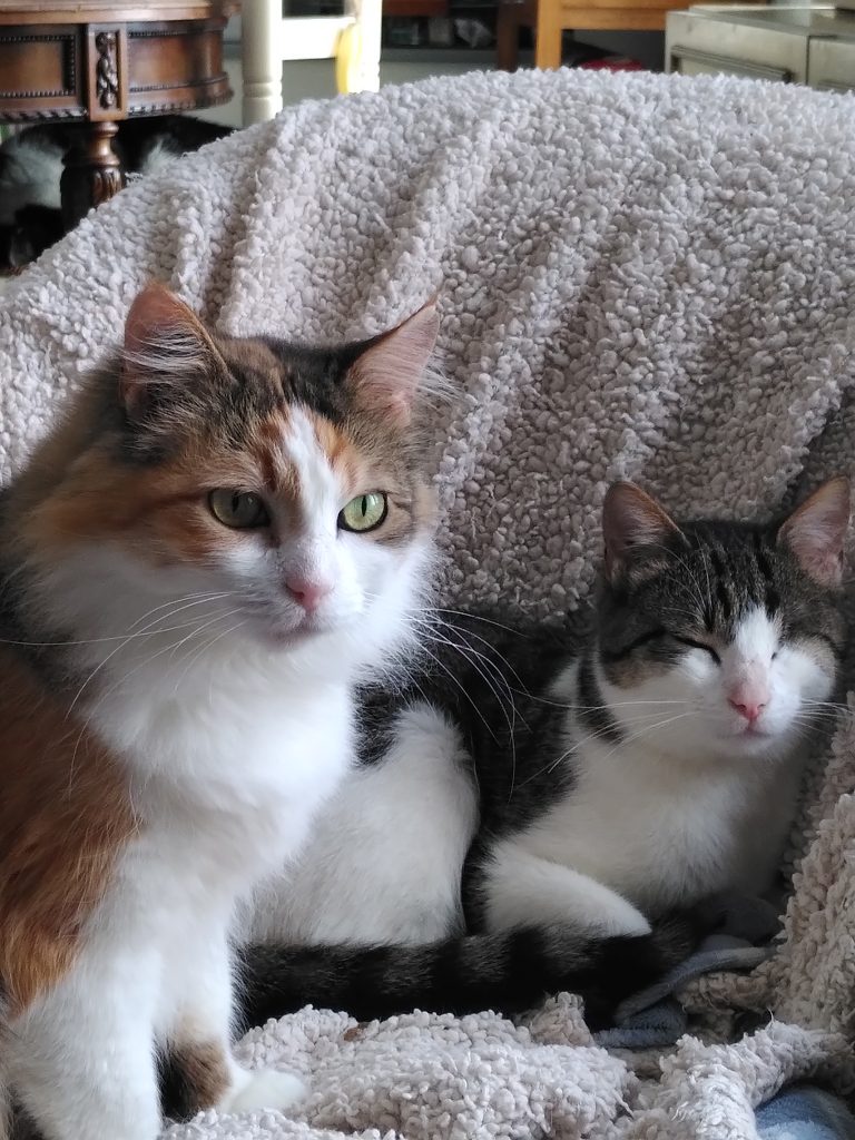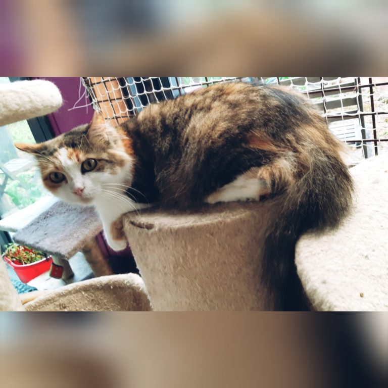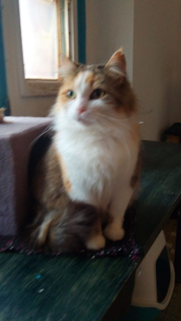 Elle dort, mange et joue avec sa fille Houpette et elles seront donc adoptées ensemble. Toutes les deux aiment les autres chats. Elles doivent vivre dans un foyer grand (minimum 50m2) et sécurisé (grilles ou filet très solide aux fenêtres) car Houpette est une grande exploratrice.