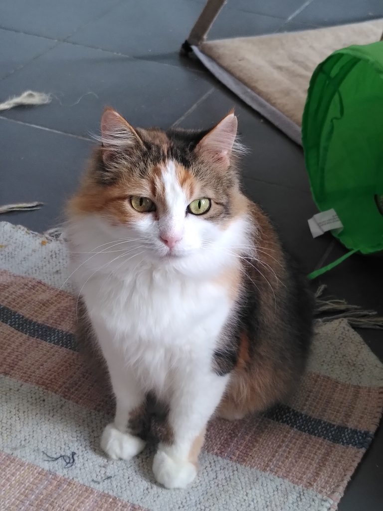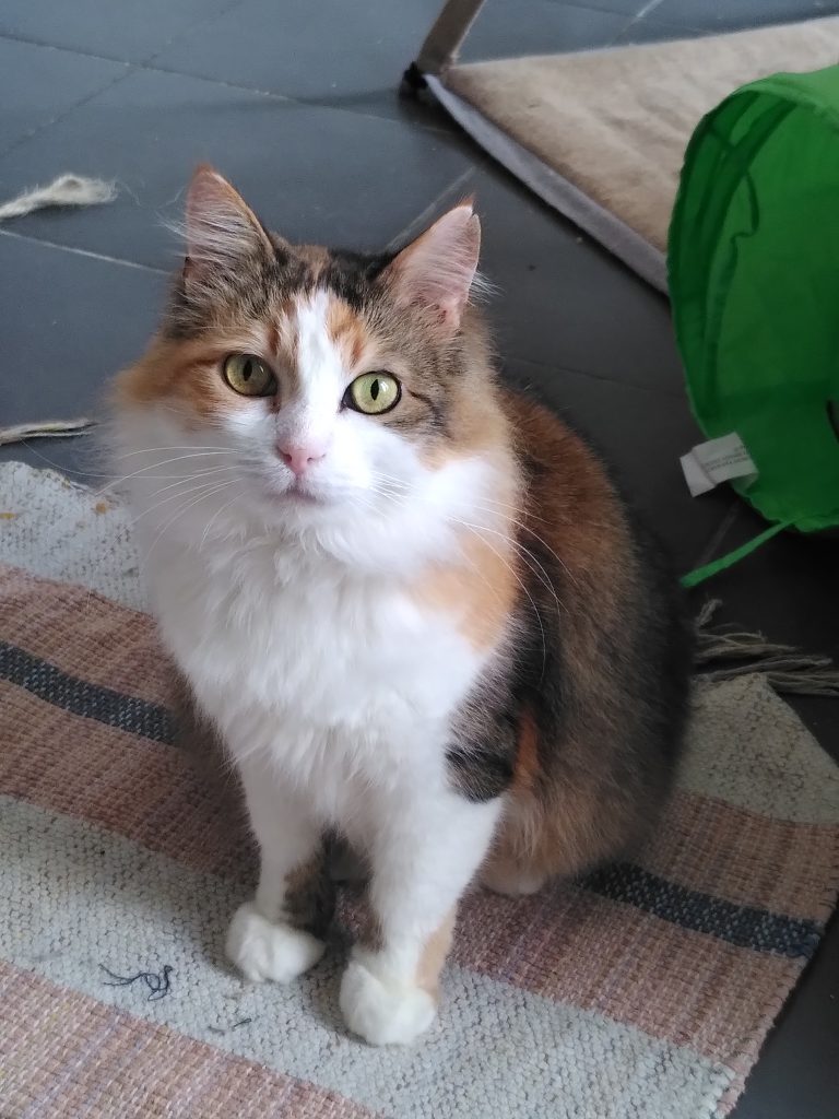 Cette gentille minette est une vraie machine à ronrons ! Elle est calme, sage et propre. Elle est très aussi très gourmande. Houhou a un peu peur des gestes brusques et a besoin de vivre dans un endroit calme.