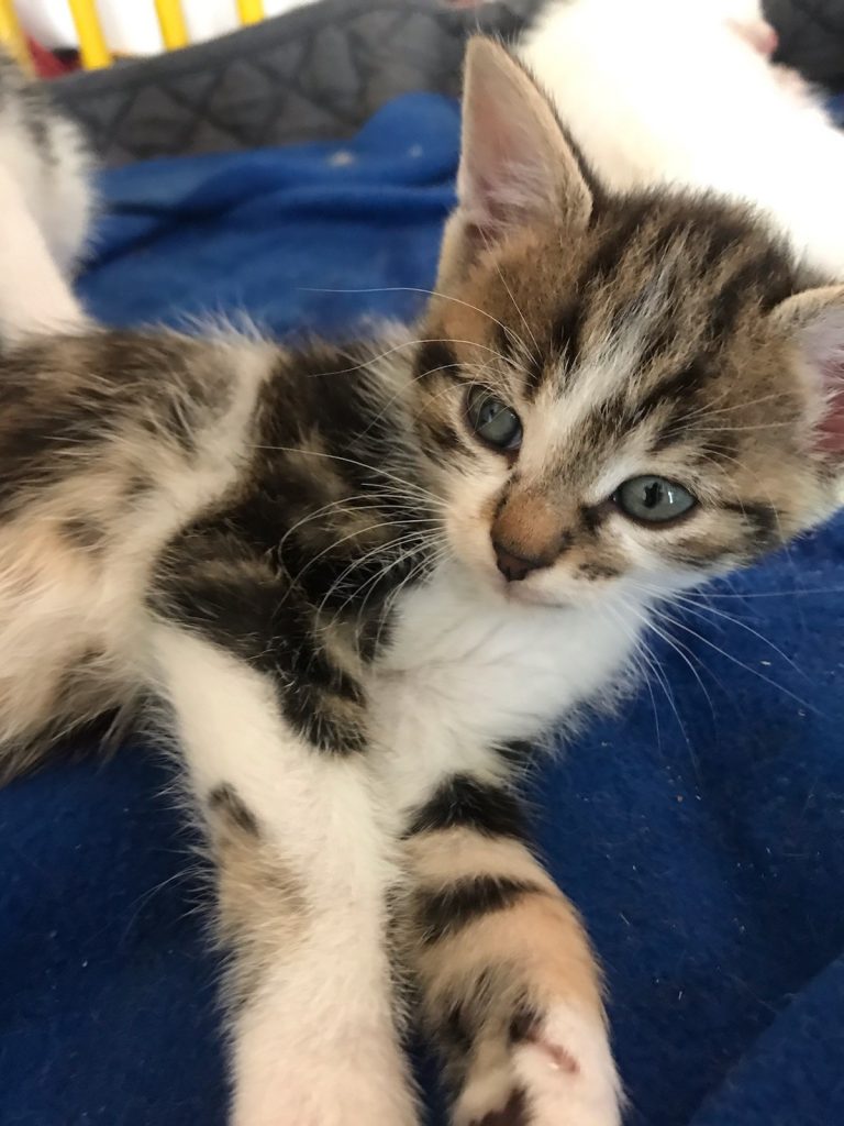 Issu d'une fratrie de 5 petits, récupéré avec sa maman dans un endroit hostile. Tout doux et tout gentil, bientôt prêt à quitter sa famille pour de nouvelles aventures