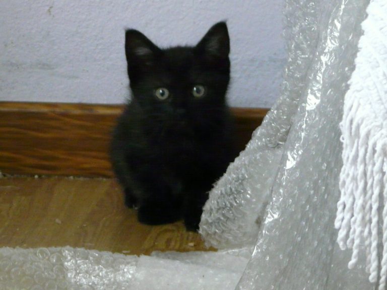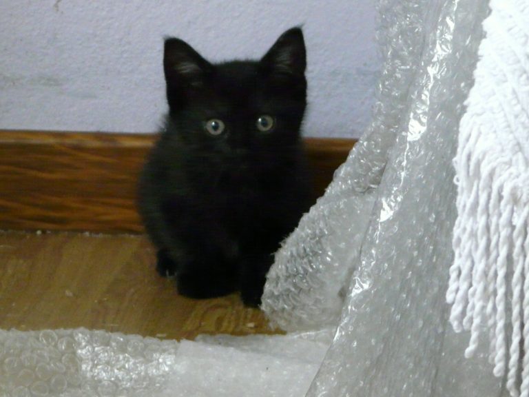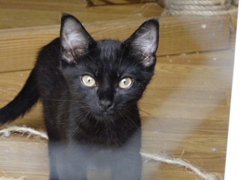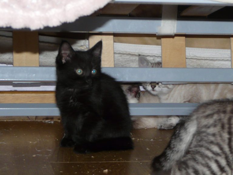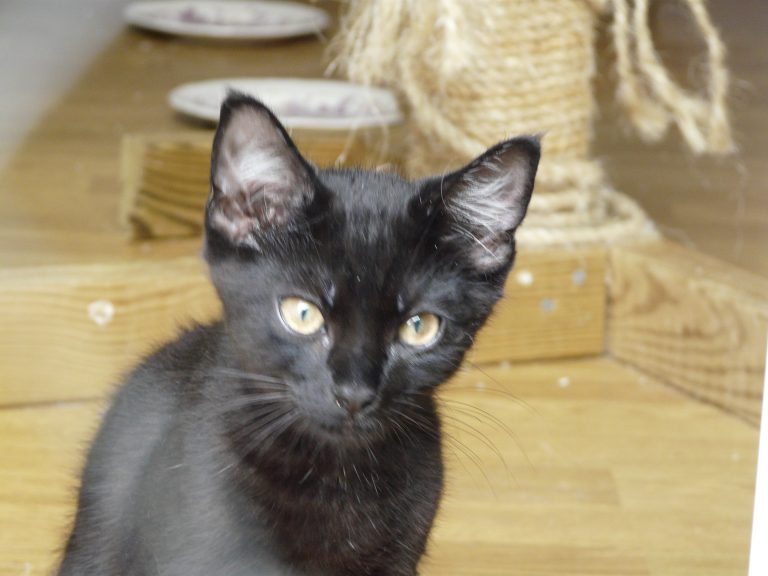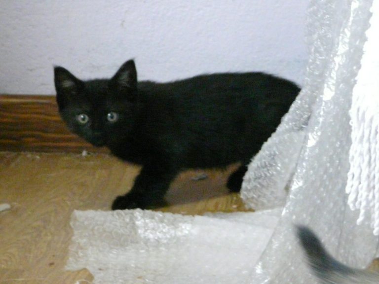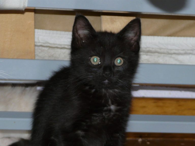Chat appartenant à une fratrie de cinq chatons, née dans une ancienne ferme où certains locaux sont encore utilisés pour un élevage de bovins. Des locataires ont pris en charge la maman au moment de sa grossesse et les bébés jusqu'à l'age de deux mois. La présence d'un renard a rendu obligatoire la prise en charge des bébés par une famille d'accueil.