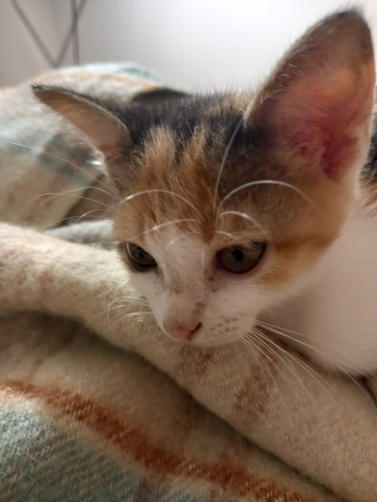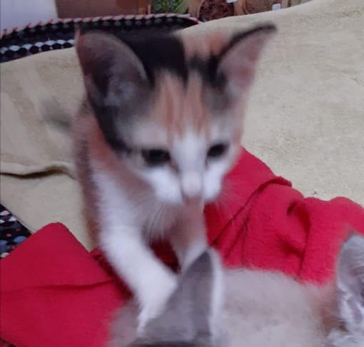 C'est un petite bonne femme adorable issue d'une fratrie de 6 bébés élevée par sa maman jusqu'à ses 3 semaines , mais celle-ci sauvage s'est sauvée par la fenêtre et ce sont des humains qui ont pris le relais au biberon . Elle est de ce fait très sociable et affectueuse . Jadoo est une espiègle qui n'a peur de rien et c'est la cheffe du groupe.