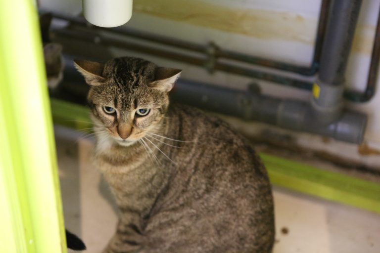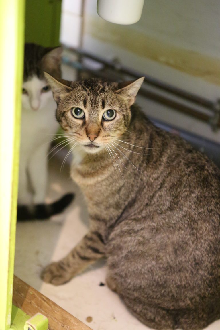 Il est présent et tranquille, mais ne veut pas qu'on le touche. S'il passe du temps en famille d'accueil, il deviendra certainement plus sociable et pourra être adopté ! Il aura besoin de temps (plusieurs mois), de patience et de gourmandises pour l'amadouer ;)