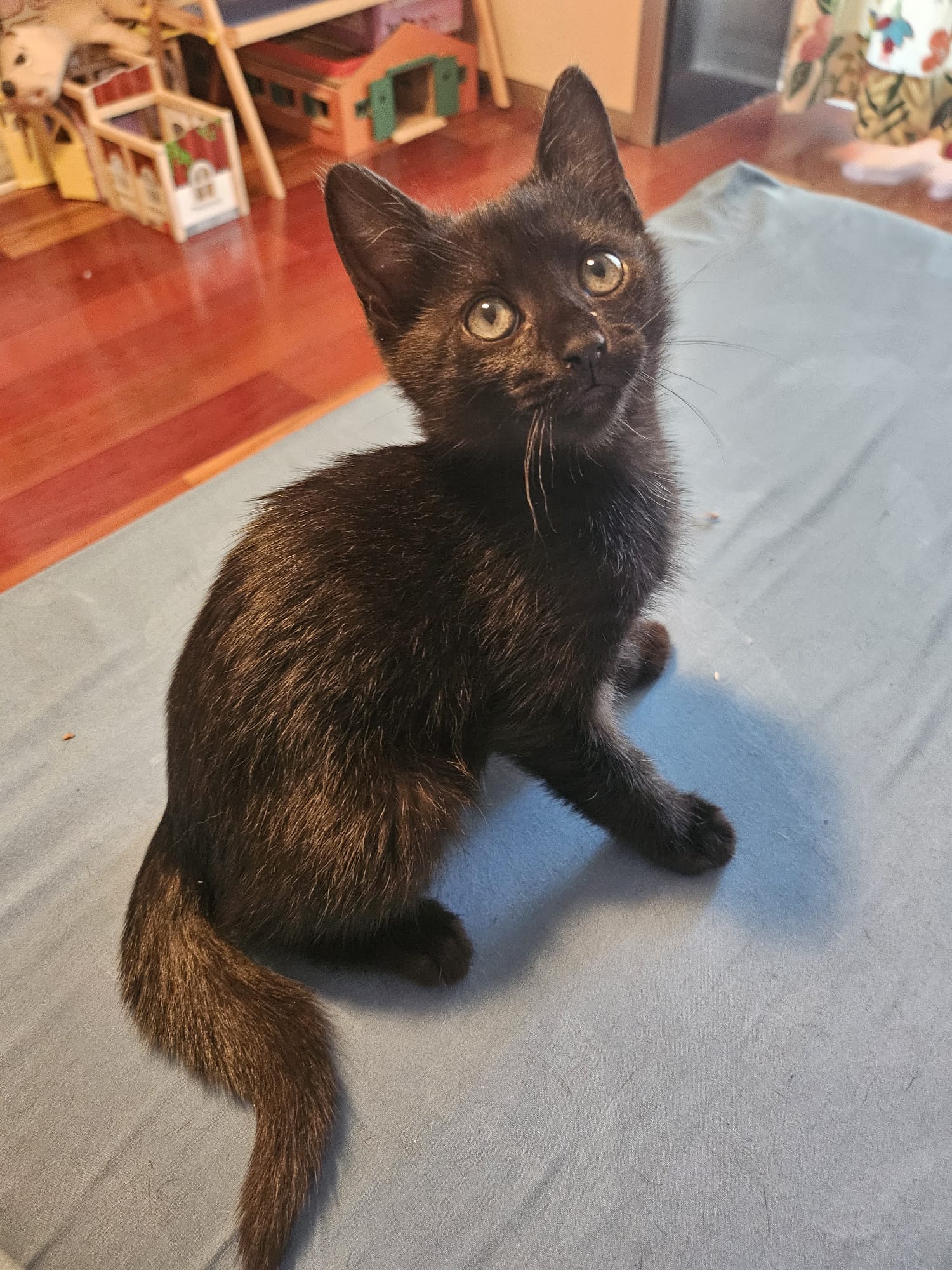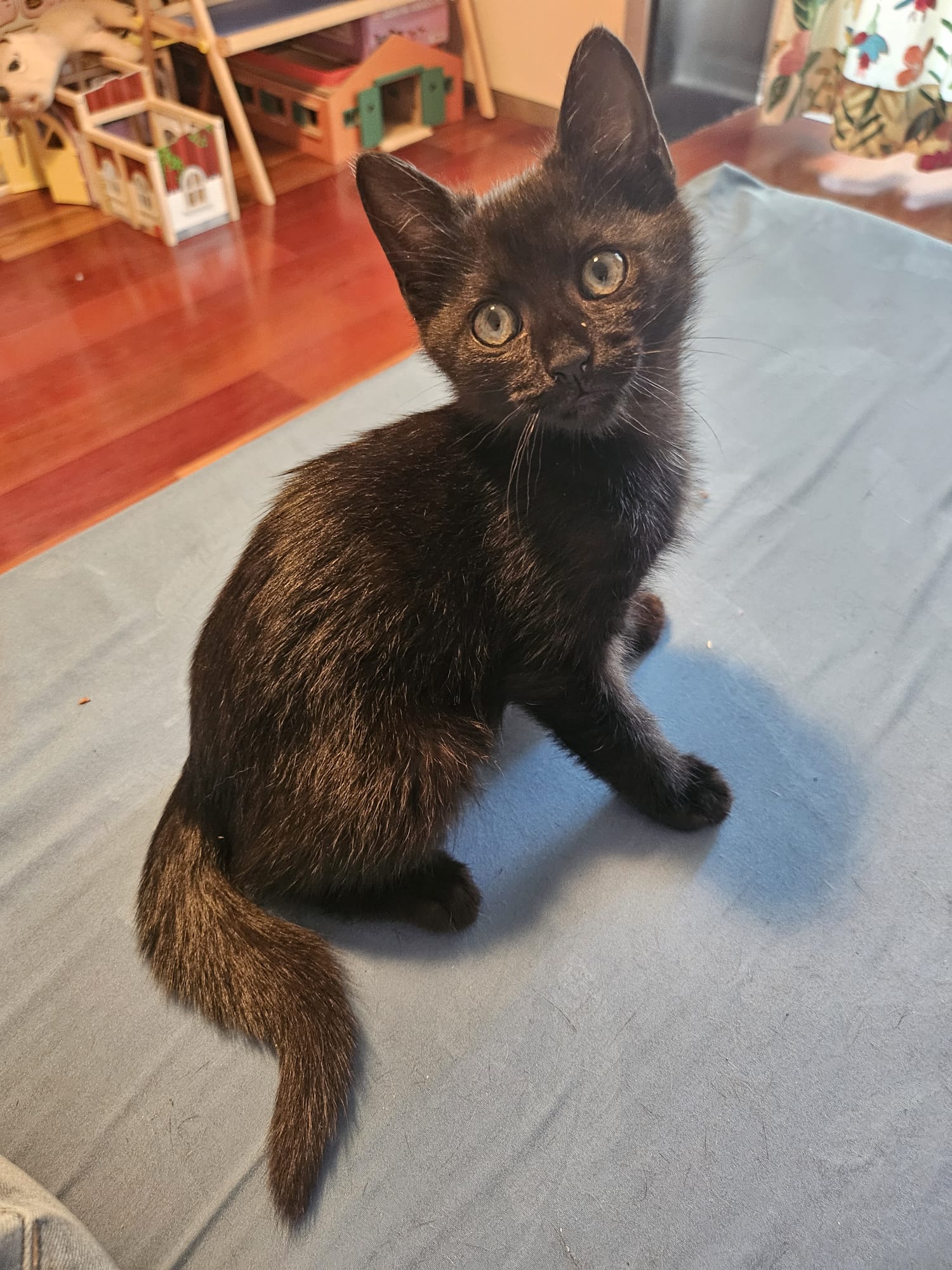 Adorable petite louloute bien dans ses papattes, très sociable et câline . Joyeuse et joueuse elle a besoin de présence car c'est encore un petit bouchon. une vraie tête à bisous