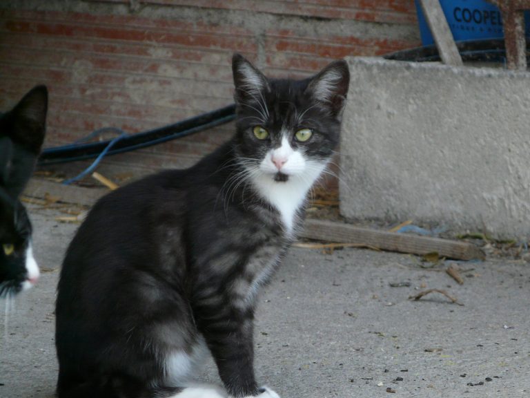 Petite chatte née dans une ferme où les chats sont utilisés pour chasser les rongeurs. L'agriculteur leur donne un kilo de croquettes (de bonne qualité) par jour. Les chats vivent en toute liberté à proximité des vaches de la ferme. Les locataires des bâtiments d'habitation, des citadins, nourrissent également les félins et leur donnent l'affection dont ils ont besoin.