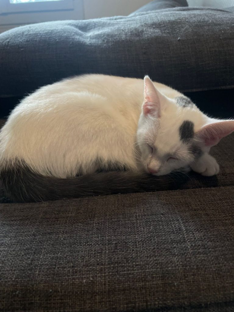 Gentille petite chatonne a été récupérée dans la rue par une gentille personne . Elle a eu la chance de croiser son chemin et nous souhaitons qu'elle puisse partager sa joie de vivre et sa tendresse avec une famille bienveillante et responsable.