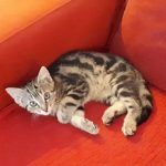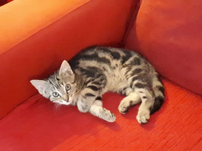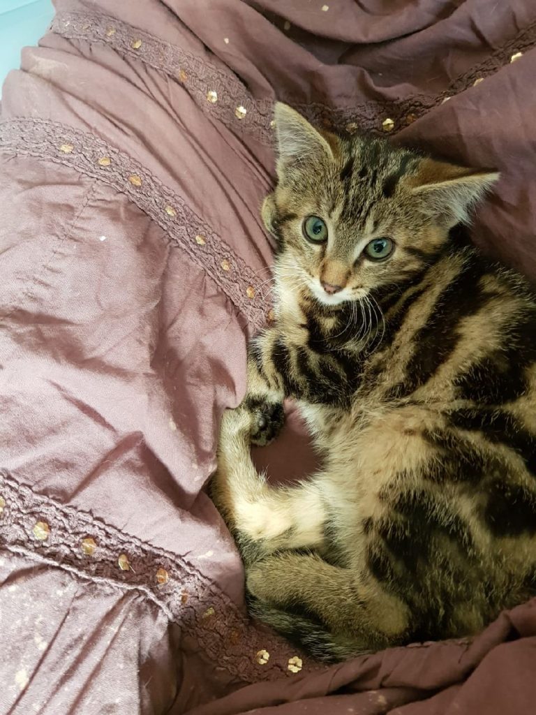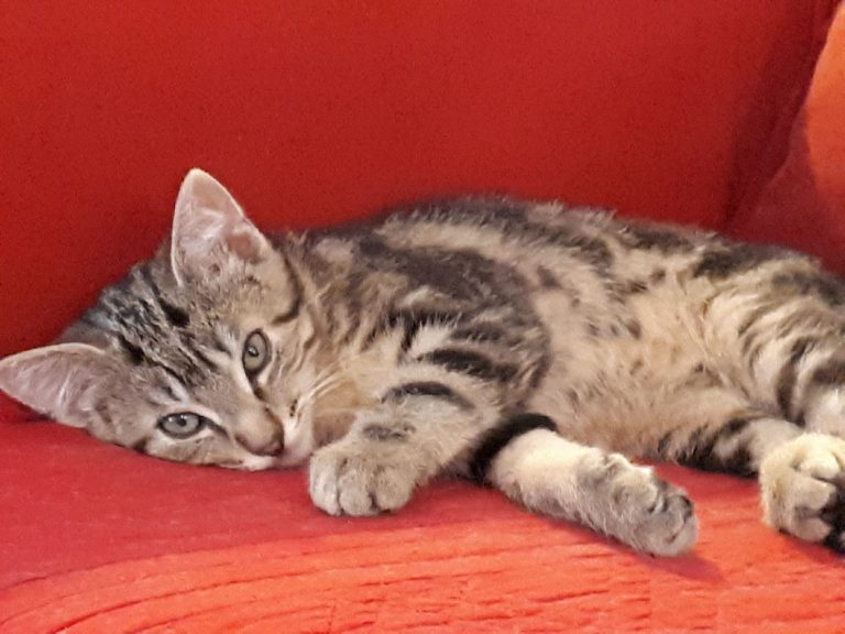 Bonjour, je m'appelle Max. Je suis un chaton tigré avec un pelage d'une belle couleur chaude et un regard puissant de félin.