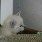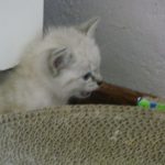 Il semble être d'une grande douceur et aime jouer avec les autres chats avec lesquels il partage la pièce.