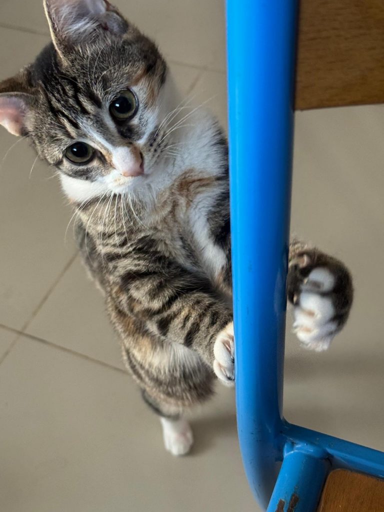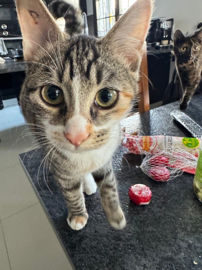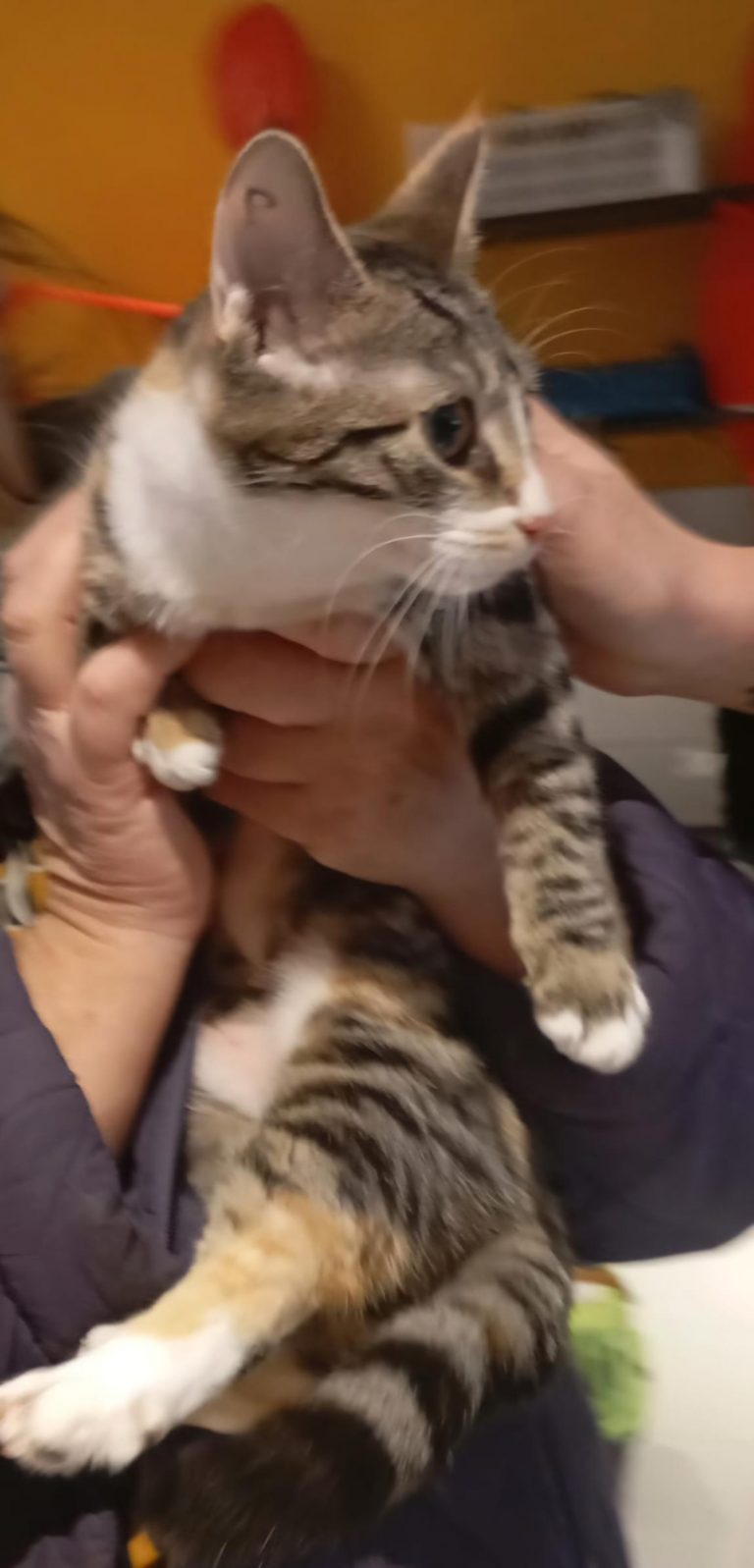 MIMI est une chatonne sympathique et rigolote , toujours joyeuse et de bonne humeur , une vraie présence qui fera le bonheur de sa future famille . Elle est aussi gourmande et câline.