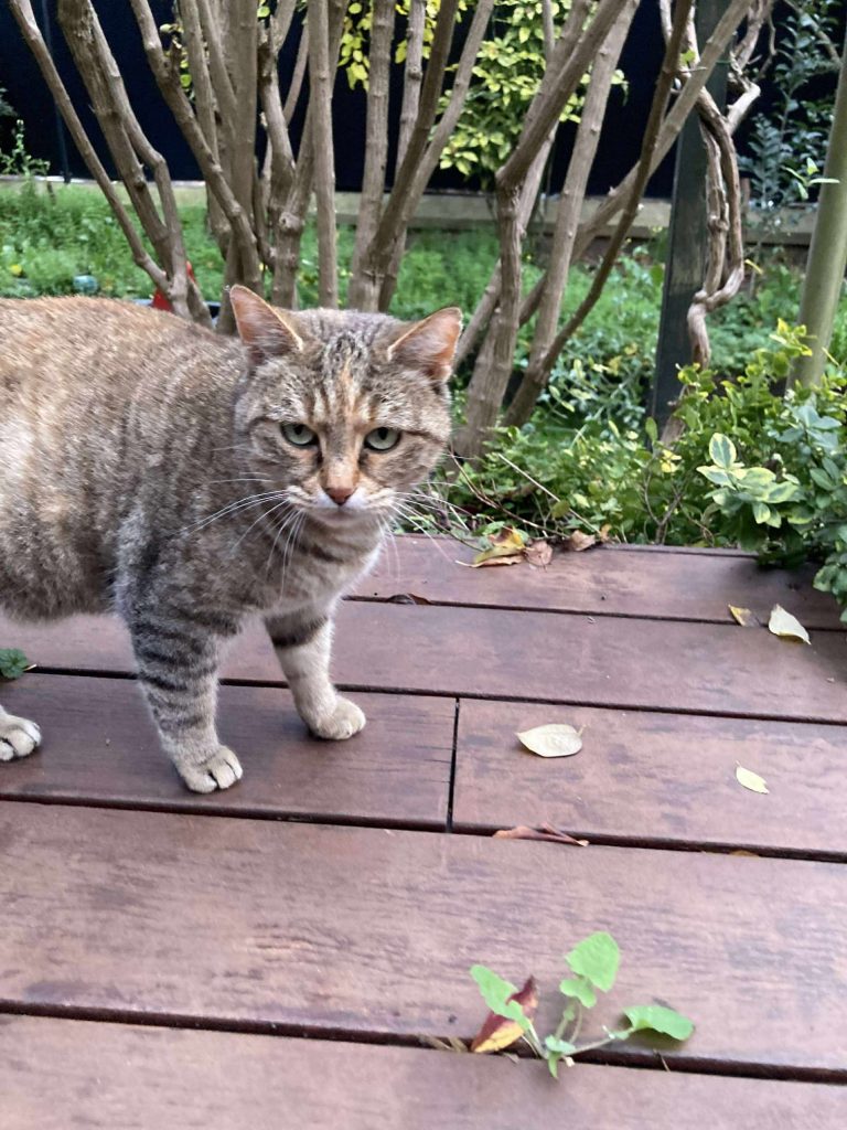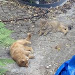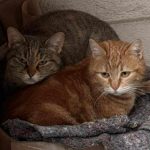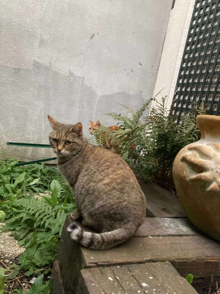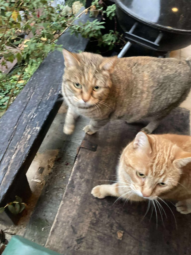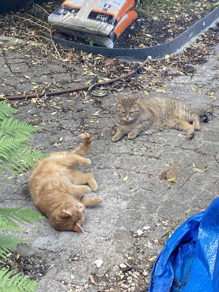 Ce sont des chattes libres, abandonnées par les anciens voisins, leurs propriétaires, qui ne les laissaient même pas entrer chez eux (elles restaient dans le garage). Lors du départ de leur humain, elles se sont réfugiées dans le jardin de leur voisine, qui s'est beaucoup occupé d'elles. Elles sont stérilisées, identifiées, vaccinées et en très bonne santé. Elles sont heureuses dans leur jardin et leur nouvelle maman s'occupe très bien d'elles, mais la maison où elle vit est vendue et les nouveaux propriétaires ne souhaitent pas qu'elles restent vivre dans ce jardin...