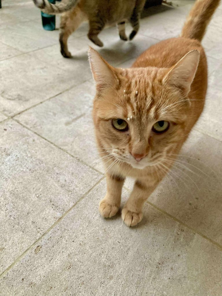 Mimine la maman est très câline et affectueuse elle a 5 ans ,sa fille Rougée est plus timide et se laisse caresser une fois en confiance elle a 2 ans