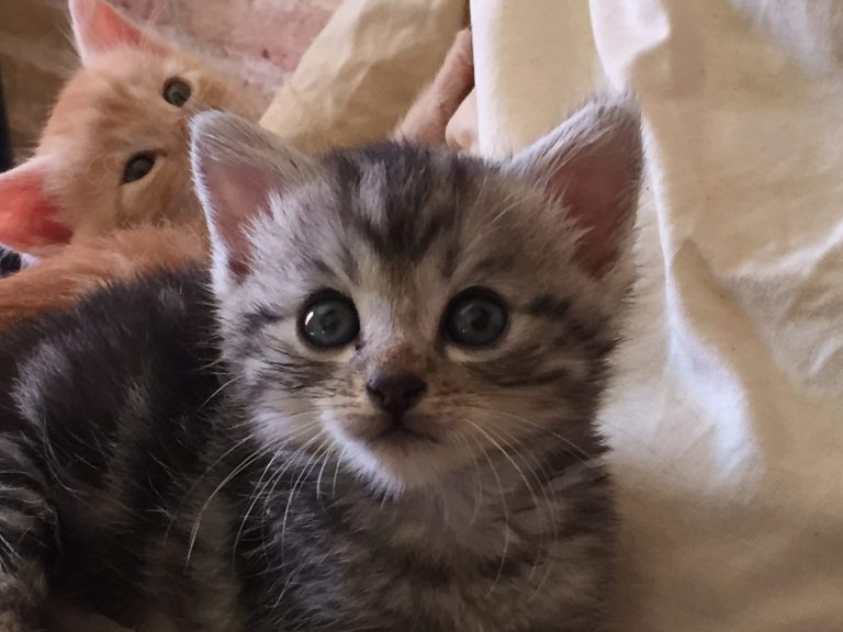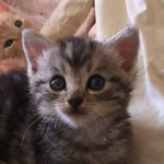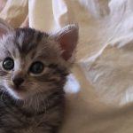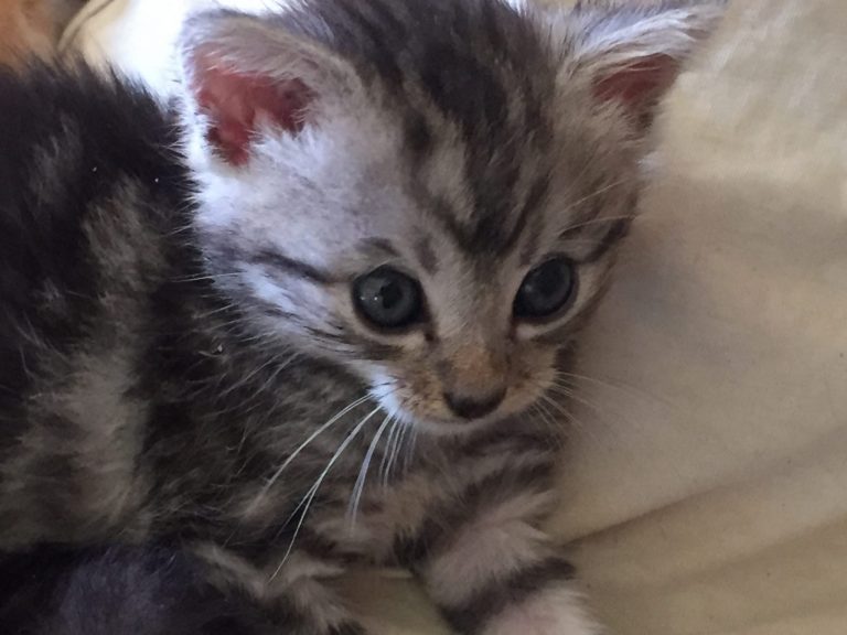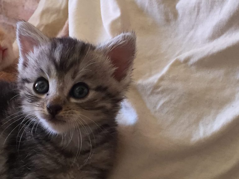 Petit chat resté environ trois semaines avec sa mère avant que celle-ci se fasse écraser pas loin de la ferme où elle vivait.