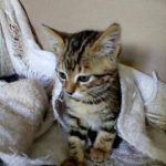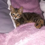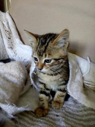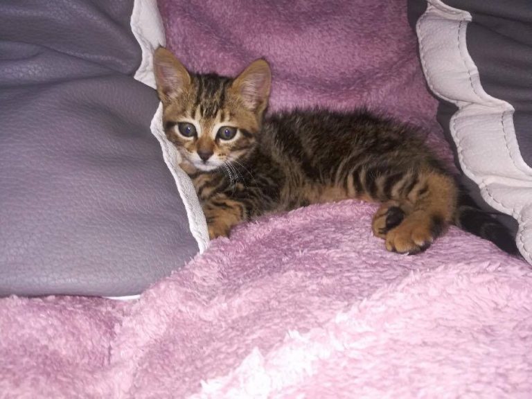 Chaton trouvé dans un jardin à Marssac (81) qui a trouvé du réconfort dans la famille d'accueil.