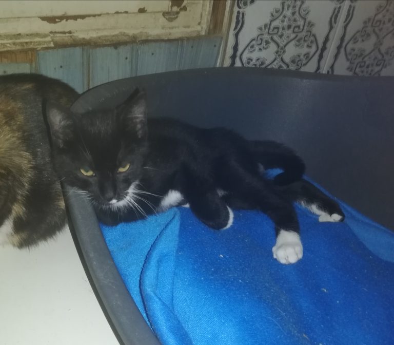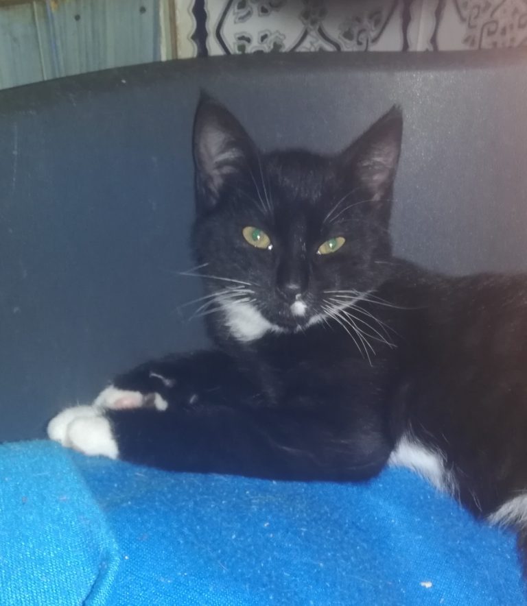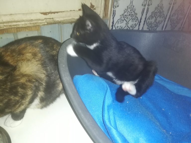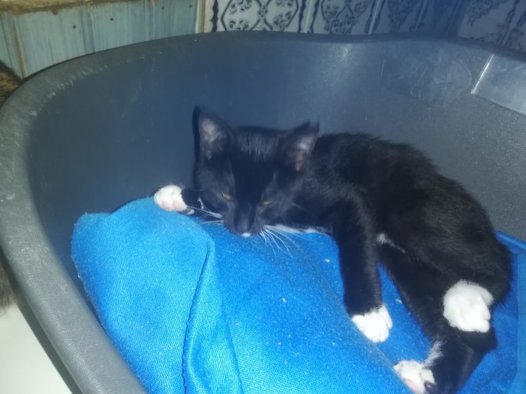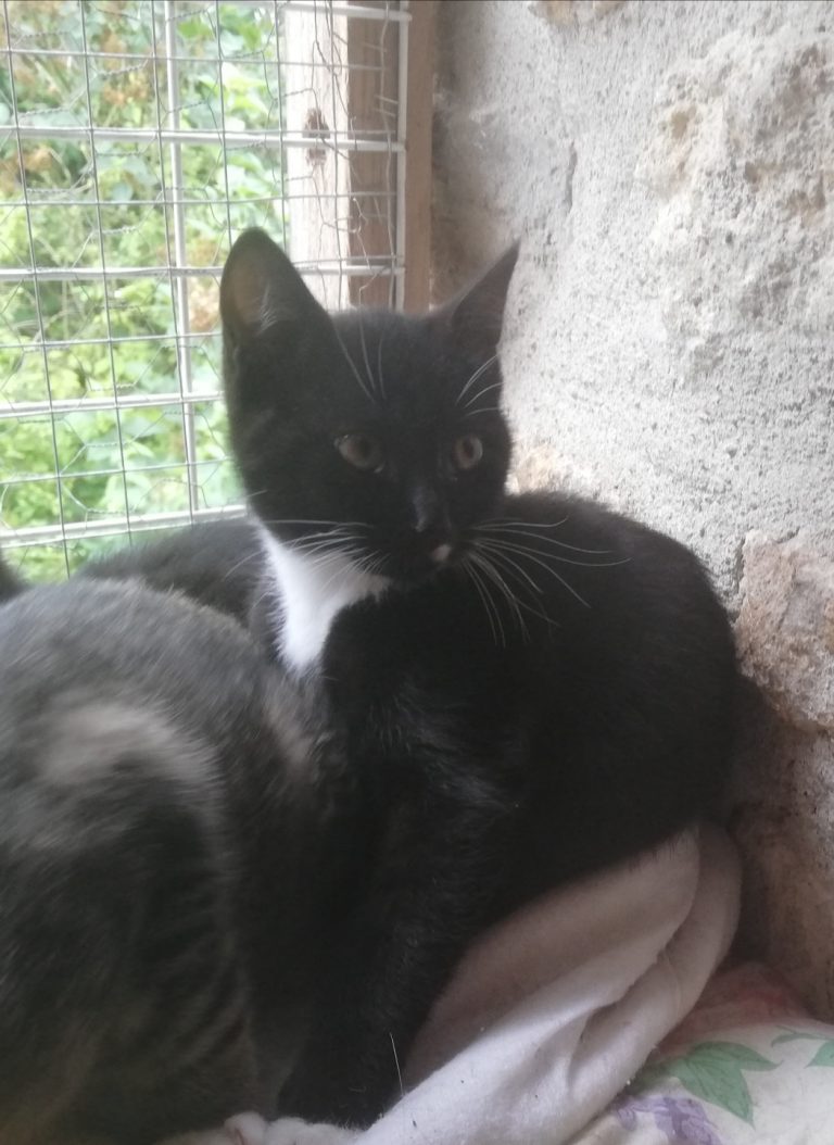 Gentil petit bonhomme qui attend sa famille humaine. Sa maman probablement mise dehors a élevés ses chatounets dans la rue avant de les amener dans la cour d'une maison où elle les pensait en sécurité. C'est là que nous les avons récupérés. Il est tout gentil ,câlin joyeux et joueur