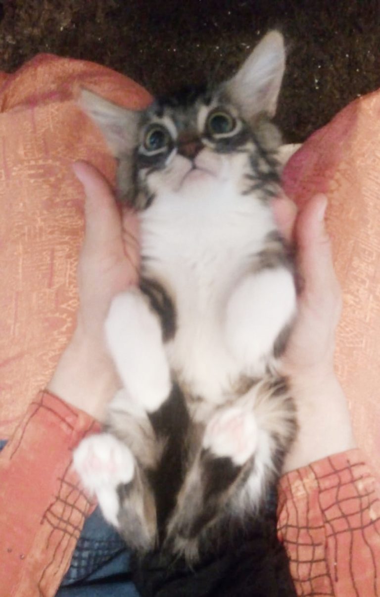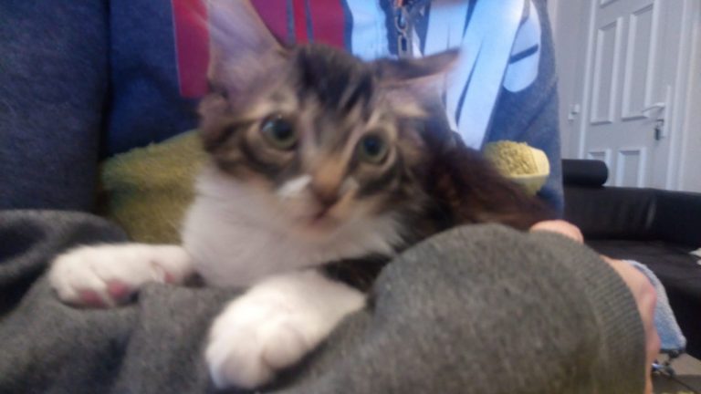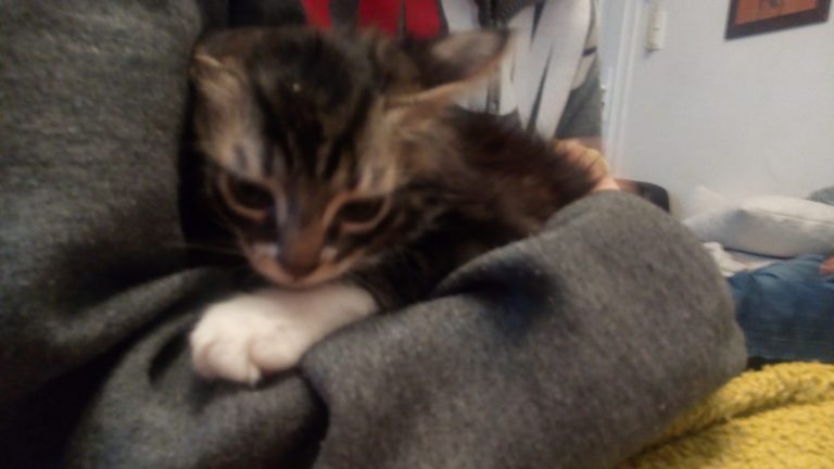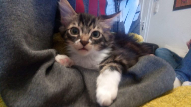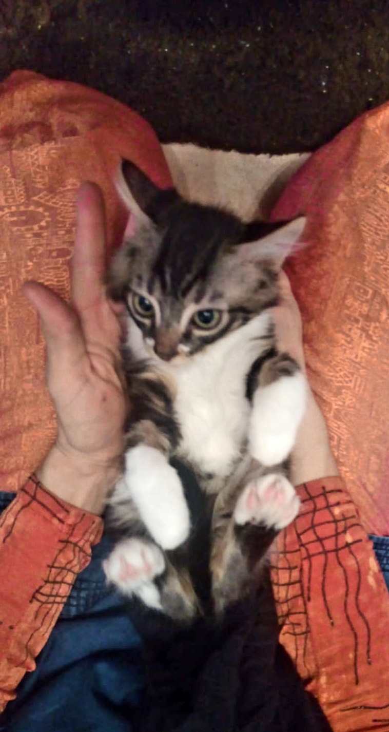 Mouchou est un jeune chaton de 3 mois gentil et sociable encore un peu timide l'idéal pour son épanouissement serait un contexte calme et doux avec un peu de patience et beaucoup d'amour il deviendra un petit bout très sympa.