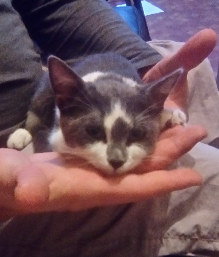 Petite chatte très dynamique qui aime jouer aiment les câlins mais ne vient pas encore spontanément les chercher habituée aux enfants et aux chiens