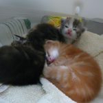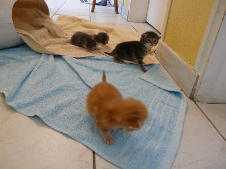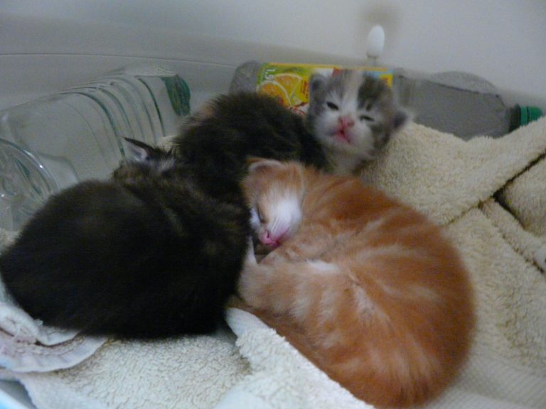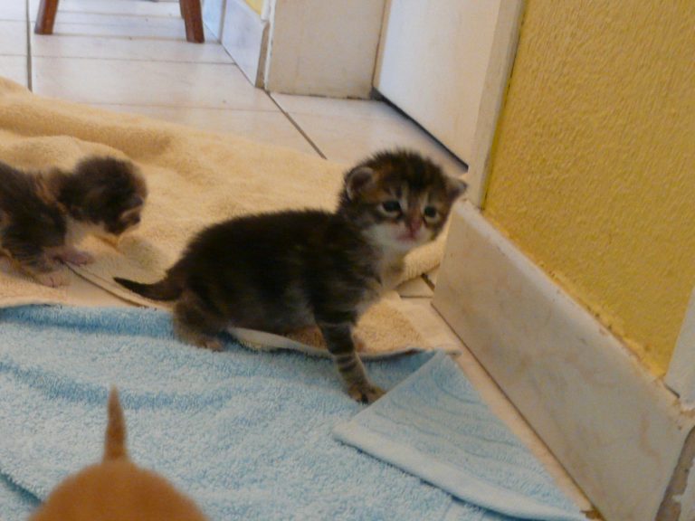 Nelly vient d'une portée de trois bébés âgés de deux ou trois semaines laissée chez le vétérinaire pour euthanasie, le vendredi 8 juin 2018... La portée a été prise en charge par la famille d'accueil qui passait à ce moment là, à la clinique vétérinaire. Résultat le 10 juin, ils sont bien au chaud et non dans le frigo...