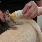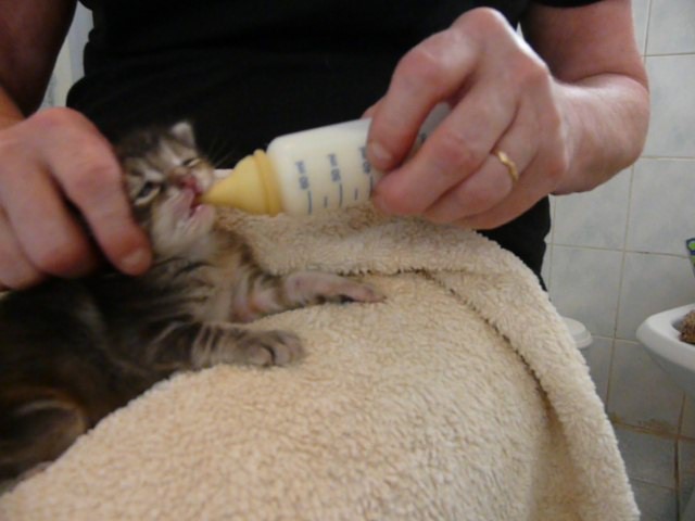 Deux jours après son arrivée elle ronronnait déjà comme une grande. Elle a été nourri au biberon.