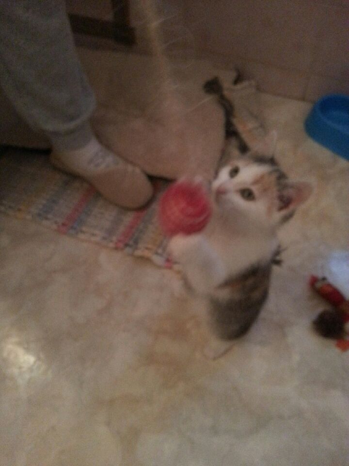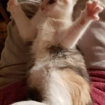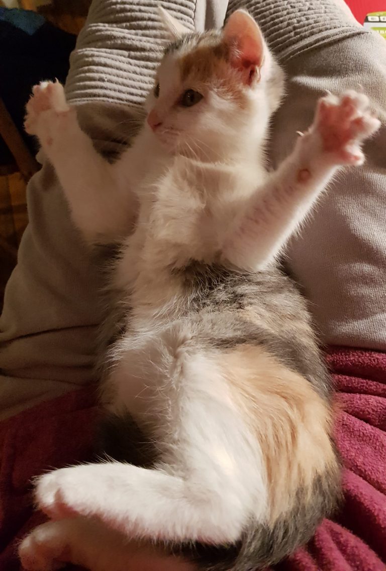 Petite chatonne de 2 mois et demi toute mignonne, très sociable, joueuse et câline, bien dans ses pattes ! Visible sur Paris sur rdv