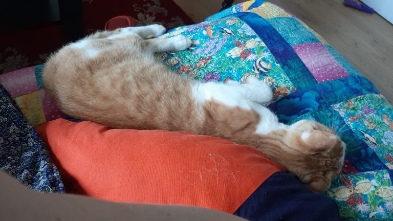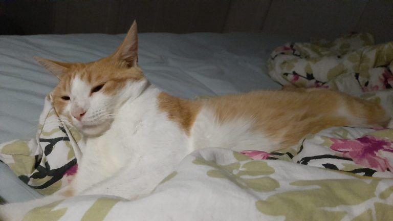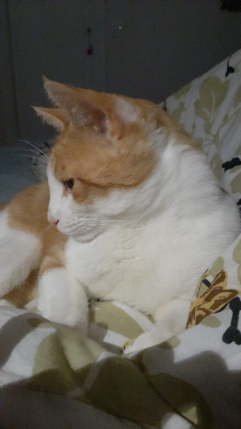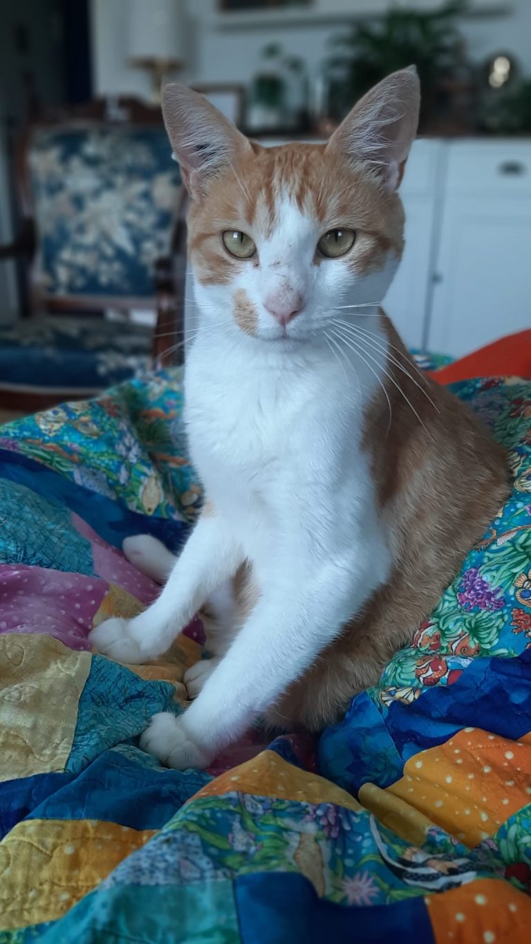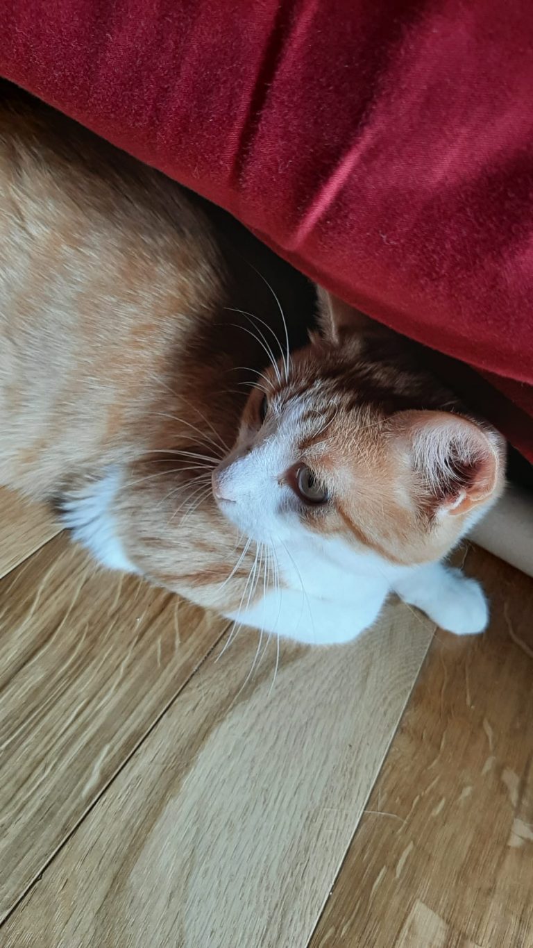 Voici ce que dit sa famille d'accueil : "Okapi est vraiment un chat super sympa, joueur et câlin. Les bruits et mouvements imprévus le font sursauter mais ça s'améliore de jour en jour. Il se laisse brosser facilement, le coupage des griffes est plus ardu mais j'ai trouvé une technique qui fonctionne. Il mange bien les croquettes et réclame sa pâté le matin"