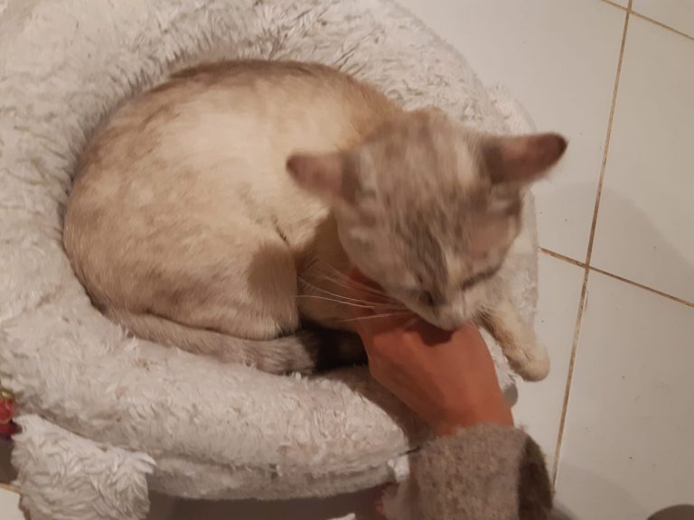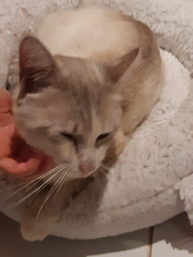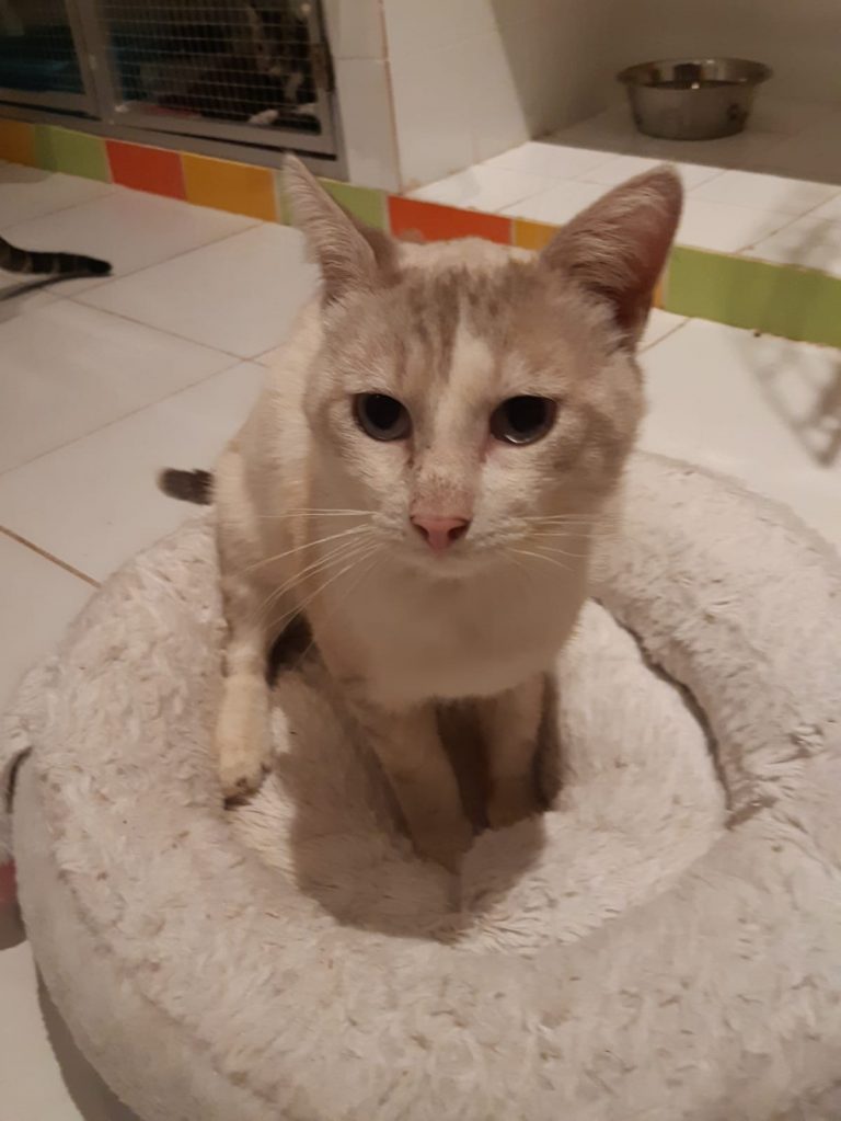 Cet adorable matou a été abandonné sur un banc dans sa caisse de transport . Il a été secouru par une personne attentive qui l'a amené au refuge. Lorsque nous l'avons sorti de sa caisse , nous avons remarqué qu'il marchait sur 3, pattes. Il a une une fracture resoudée sans soins. Il va très bien maintenant mais conserve une légère boiterie qui ne change rien à sa mobilité.